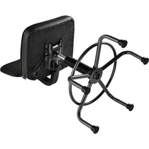 Interion Ultra Comfort Stool Black Fabric This Interion By Global Industrial fabric upholstered stool is quality-constructed with a contoured 18"W x 16-1/4"D seat and 16"W x 10"H back design to help eliminate discomfort and fatigue. Extra thick 3-3/4'' fabric seat. 4-way adjustable backrest for customized support. Pneumatic seat height adjusts from 21 - 25". 18'' diameter foot ring allows 360 degree swivel. The steel base measures 23-1/2" diameter overall. Easy Assembly. 1-Year Limited Warranty.