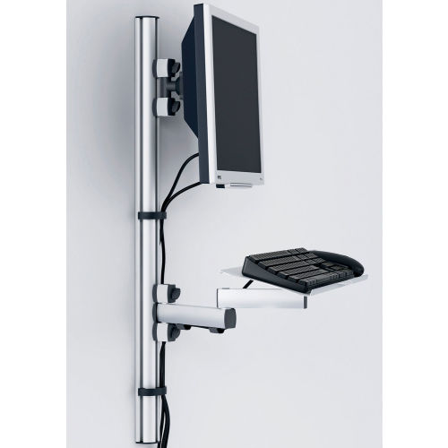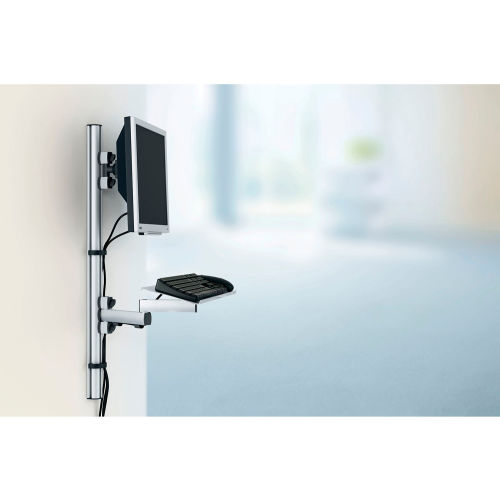 Personalized workspace options from Novus deliver a clean look, improved ergonomics, and the freedom to easily change your workspace. NOVUS More Space sets provide clever all-inclusive solutions for any workspace. The NOVUS TSS Wall Station is ideal where wall-mounted technology is most convenient. The TSS Wall Station's adjustability and strength make it ideal for shared work spaces including healthcare offices, laboratories, and manufacturing settings. The TSS Wall Station includes a 35" wall mount TSS column that allows the monitor and keyboard arms to be adjusted for the perfect height, whether standing or sitting. Also included is the TSS Support Carriage for 1 monitor weighing up to 33 lbs with a range of 4.13". The TSS keyboard holder holds a standard keyboard and mouse, extending to 20.79" and tilting to a 45 degree angle. The NOVUS TSS Wall Station is covered by a 5 year guarantee. This set is ideal where wall-mounted technology is most convenient. The TSS Wall Station's adjustability and strength make it ideal for shared work spaces including healthcare offices, laboratories, and manufacturing settings. Features: Adjustability: tilt/turn angle, height, rotationRange: TSS support carriage 4.13" / TSS keyboard holder 20.79"Carrying capacity: 33 lbsPivot: TSS keyboard holder 180 degreesSize: Wall mount TSS column 35"Mounting standard: VESA 75/100German engineered for quality.