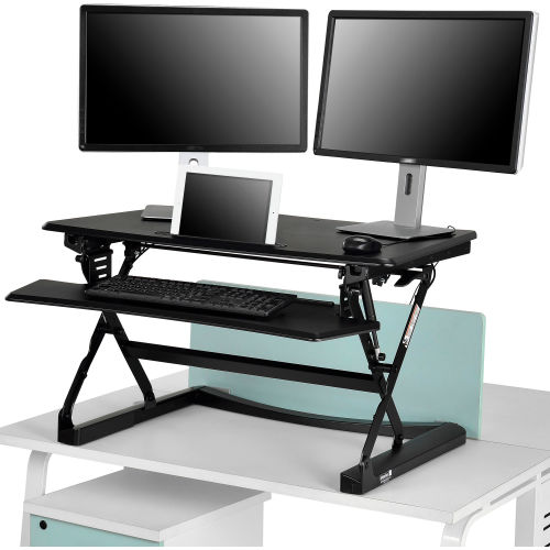 Interion Ergonomic Sit-Stand Desk Converter & Dual Monitor Mount Kit - Full Width Keyboard