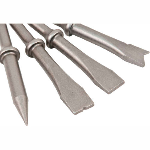 Durable, quality tools that can withstand frequent and rigorous applications, the R6 Series can handle 6 hour workdays and get the job done. Short barrel length features a round shank designPistol grip with variable-speed trigger for precise impact control on gradual starts and stopsStandard spring retainer permits quick changing of toolsIncludes 4 piece chisel set.