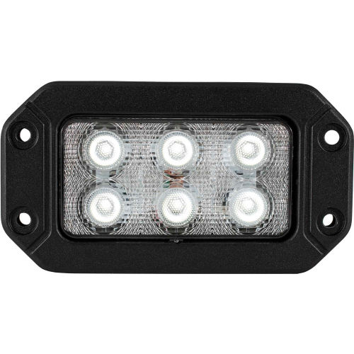 Buyers Products Recessed Wide Rectangular LED Flood Light provides 1140 lumens of light across 63 meters. It includes a 30 rubber offset mount. The durable light features a die-cast aluminum body and impact-resistant acrylic lens, and it's rated IP67 for dust and water resistance. Installation is easy with an 18 in. blunt cut lead. The light's versatile design makes it perfect for both on-road and off-road applications. It's backed with a 5 year warranty.