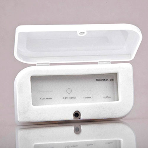 This is a precise stage micrometer with 4-scales used to calibrate microscopes or microscope cameras for precise measurement. It comes with four scales including 1mm total length that is subdivided into 100 divisions, that is, each division is 0.01mm. Features & Specifications: A Precision Stage Micrometer with 4-ScalesGreat for Calibrating Your Microscope or Microscope Camera Reticules1mm Total Length Subdivided into 100 DivisionsEach Division is 0.01mm AcrossBrightly Illuminated Grid LinesPrecision Ground Glass SlidePlease call for the availability of English Mills units (1/1000 inch)Manufactured under ISO 9001 Quality Control StandardExcellent 1-Year Factory Warranty.