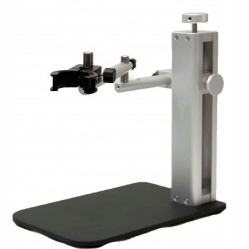 The Dino-Lite RK-10A universal stand is a stable tabletop platform that features precise fine-focus adjustment and a new quick release function. This high-quality product is compatible with the complete line of Dino-Lite handheld microscope cameras. The RK-10A quick release button is helpful for fast and convenient vertical movement and fine-focus adjustment knob is especially useful at high magnification. This model also includes an adjustable safety stop to help prevent accidental collisions between the microscope and the object in view. Its adjustable horizontal arm has a 7-inch range with 360-degree rotation and an optional arm attachment is included that increases its effective range of motion. These features combine to provide complete command and control of microscope orientation and positioning for maximum productivity and ease of use. The RK-10 is composed of resilient stainless steel and lightweight aluminum.