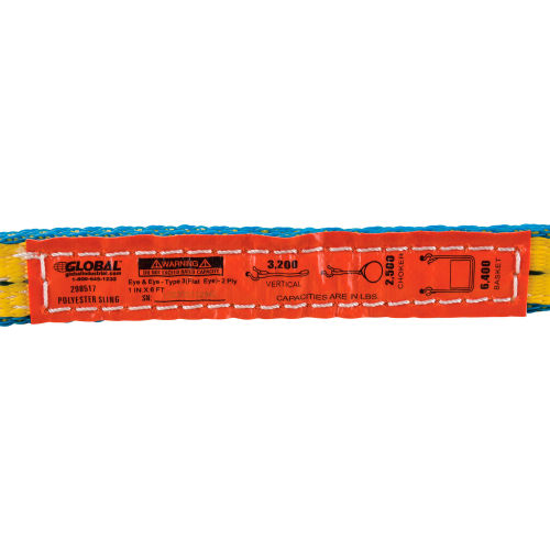 Buy Global Industrial Sling, Eye & Eye, 6 Ft L x 1 In W, 3200/2500/6400 Lbs Cap for $16.50 at @ Globalindustrial.com