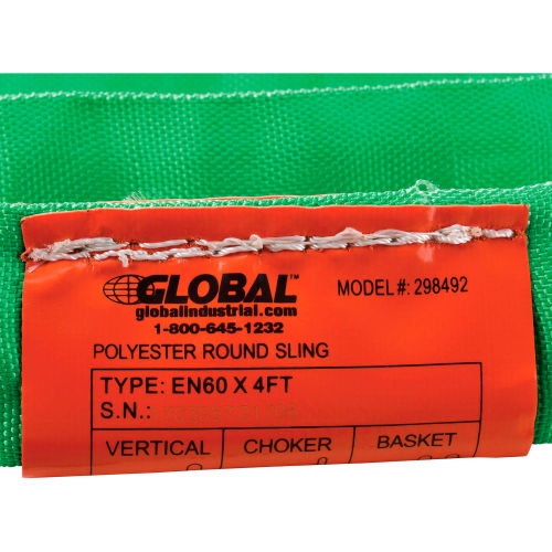 Buy Global Industrial Polyester Round Sling, Endless, 4 Ft. x 1.25 In, 5300/4200/10600 Lbs Cap for $11.00 at @ Globalindustrial.com