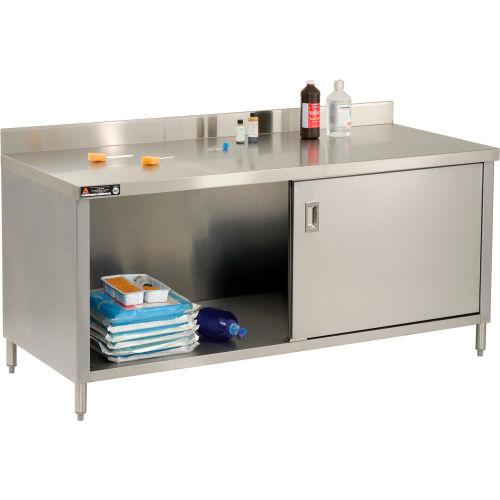 Buy Aero Manufacturing 304 Stainless Steel Cabinet Table, 72 x 30", Backsplash, Sliding Doors for $1,599.00 at @ Globalindustrial.com
