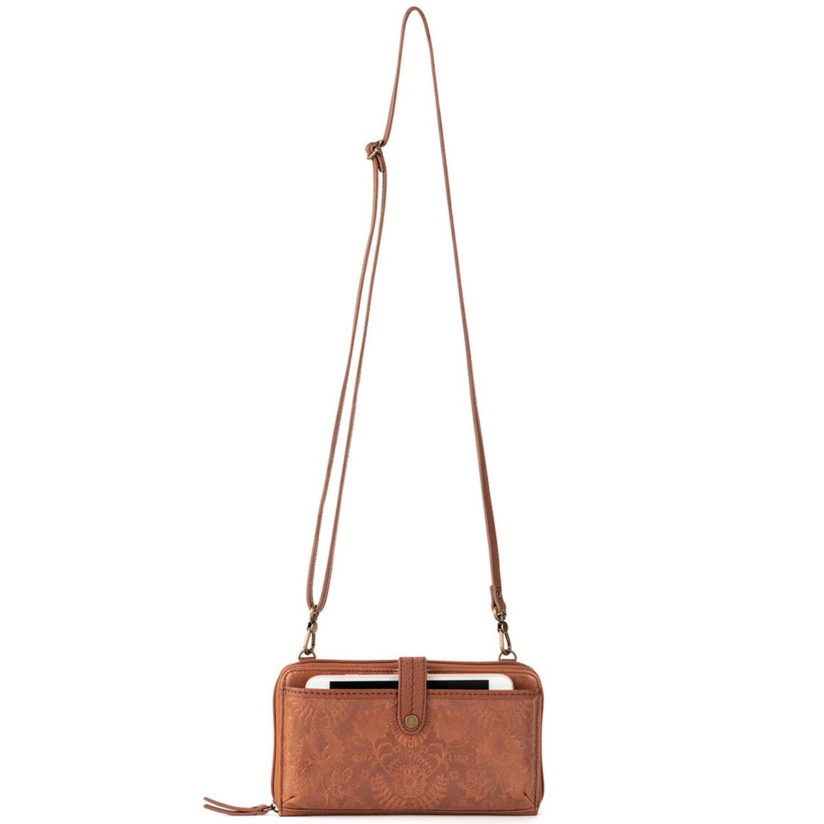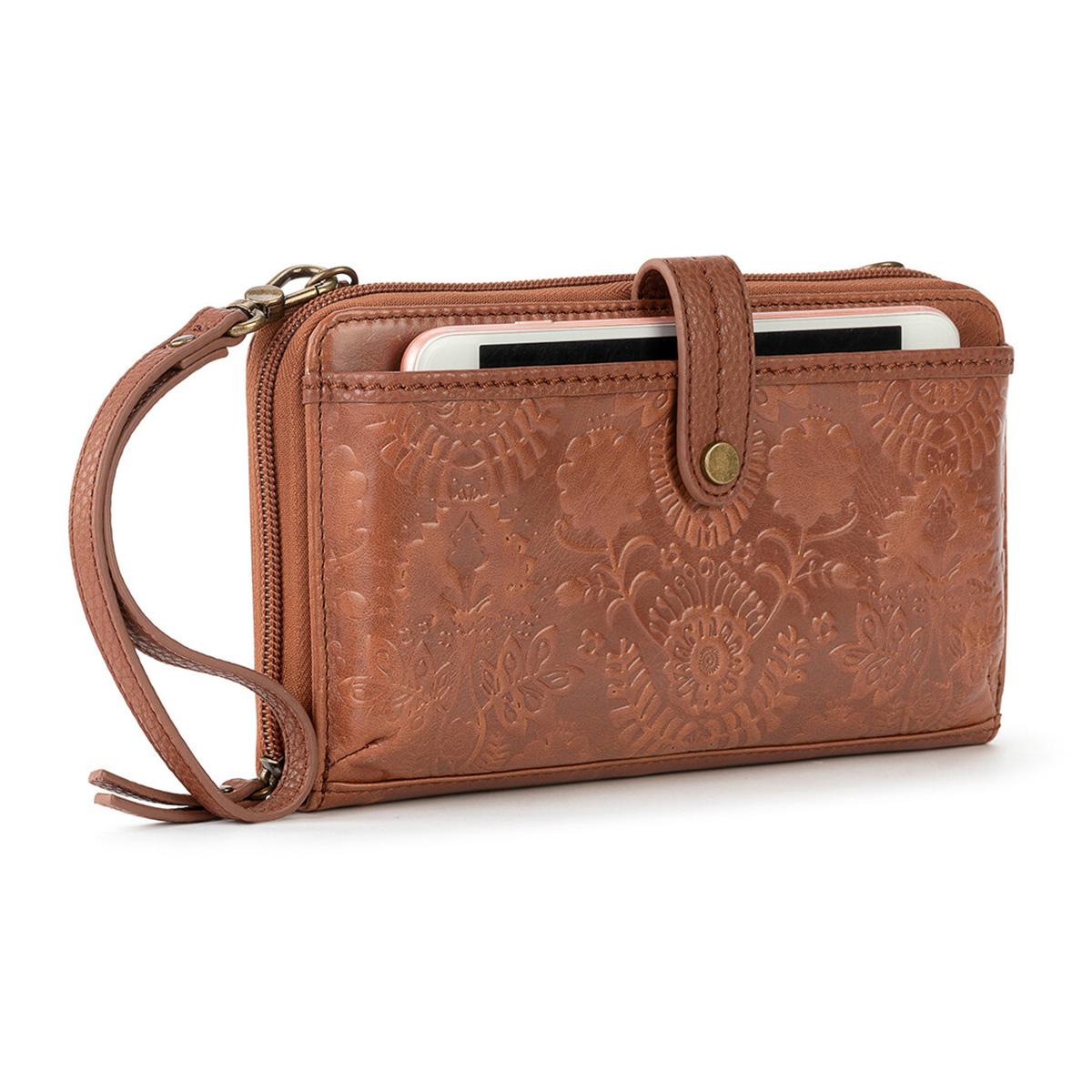 Meet your new favorite wristlets! The Womens Sak largefloral embossed version features a compact size but has a snap front pocket specially sized for holding your smartphone, making it your most versatile style. Top zipper closure Exterior: Snap front pocket Interior: 16 credit card slots, Zip pocket Detachable crossbody and wristlet strap.