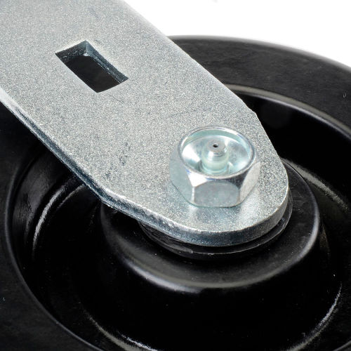 Heavy Duty Rigid Plate Caster Plastic Wheel 800 Lb. Capacity - CW4-620R-PHRB Ideal for general utility trucks, platform trucks, and dollies. Swivel casters have hardened double ball races and heat treated king bolt for long life. Wheels roll easily on cage type hardened and ground roller bearings.