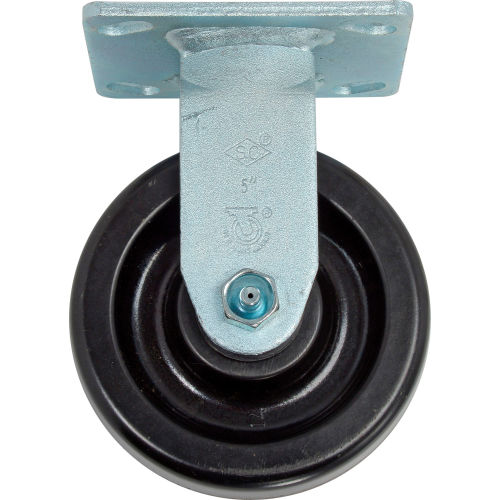 Heavy Duty Rigid Plate Caster Plastic Wheel 500 Lb. Capacity - CW3-515R-PHRB Ideal for general utility trucks, platform trucks, and dollies. Swivel casters have hardened double ball races and heat treated king bolt for long life. Wheels roll easily on cage type hardened and ground roller bearings.