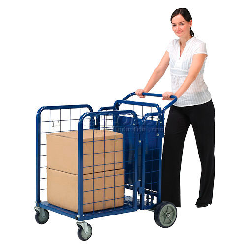 Buy Global Industrial Fold-A-Way Stock Cart w/2 Shelves, lb. Cap, 38"L x 28"W x 39"H, Blue for $212.46 at @ Globalindustrial.com