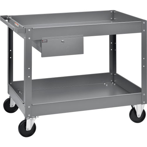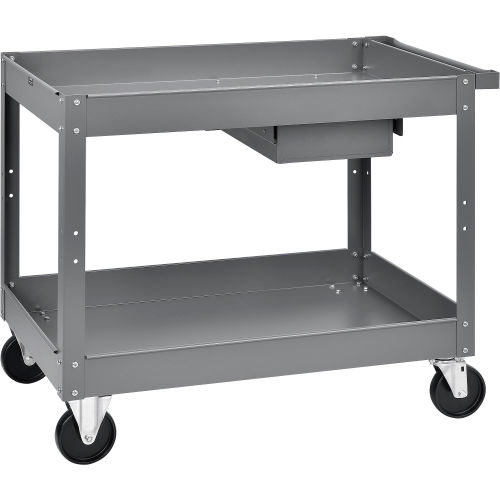 Global Industrial Stock Cart w/1 Drawer & 2 Shelves, lb. Cap, 36"L x 24"W x 32"H, Gray