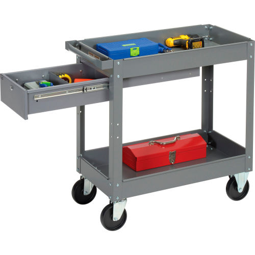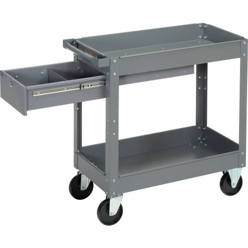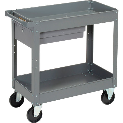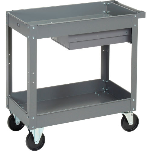 Global Industrial Stock Cart w/1 Drawer & 2 Shelves, lb. Cap, 30"L x 16"W x 32"H, Gray