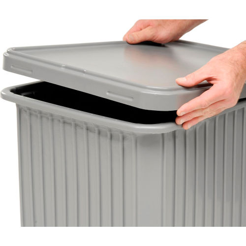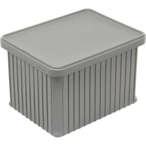 PLASTIC BOX COVERS Box cover is made with gray plastic. Plastic cover easily snaps in place to help protect contents. For use with containers measuring 22"L x 17"W. - Pkg Qty 6.