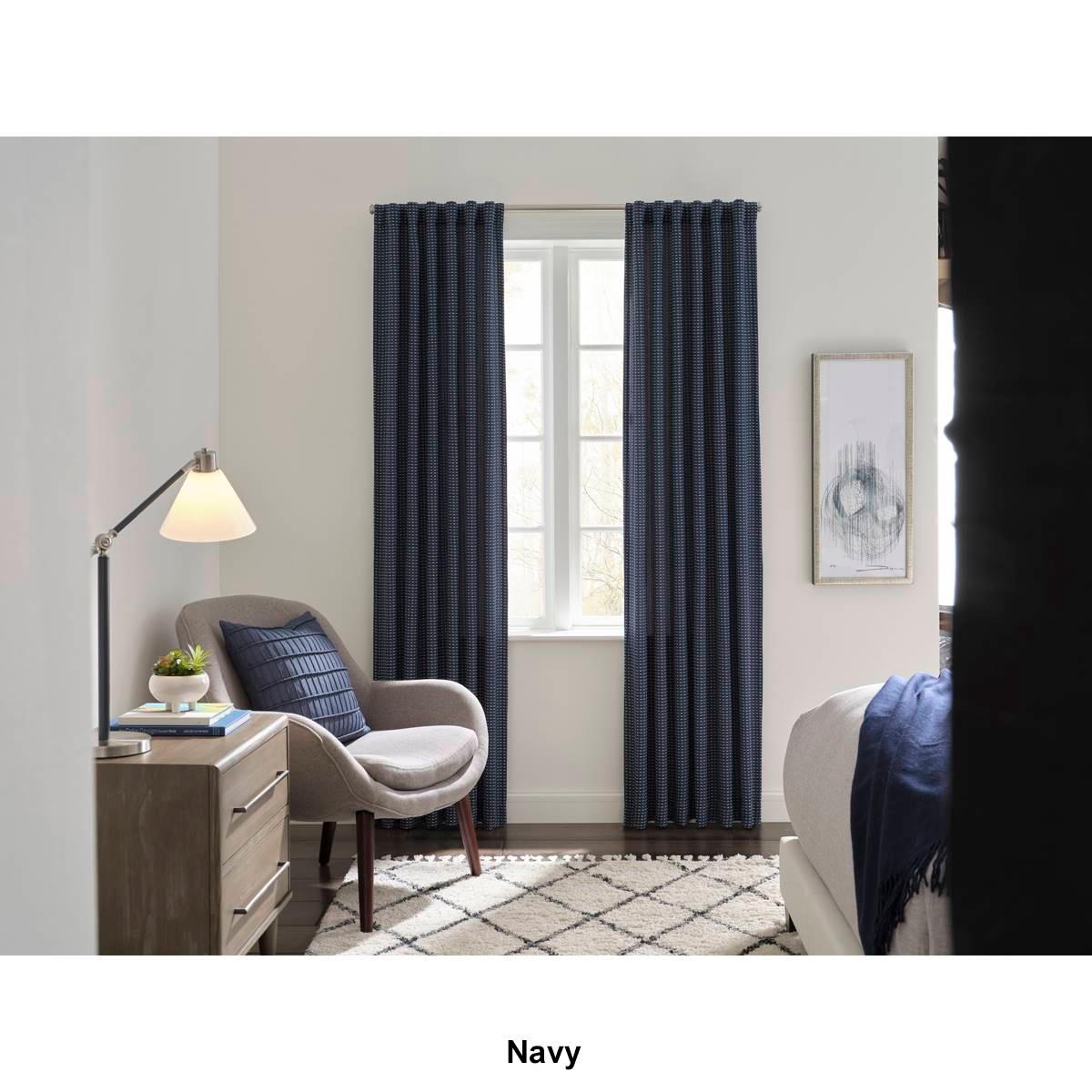 Pattern: Pinstripe Shown: Two 84" panels Sizes: 50"x63", 50"x84", 50"x95", or 50"x108" One panel per package Up to 1 3/4 inch rod diameter.