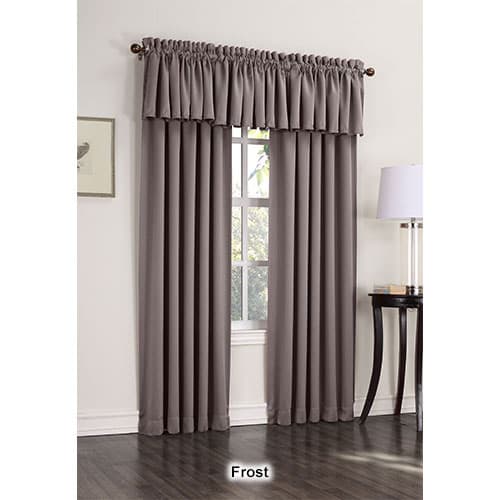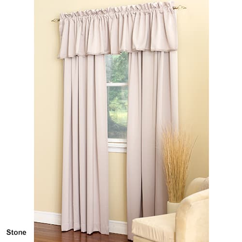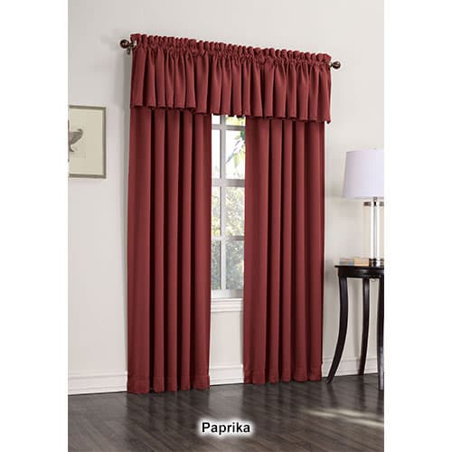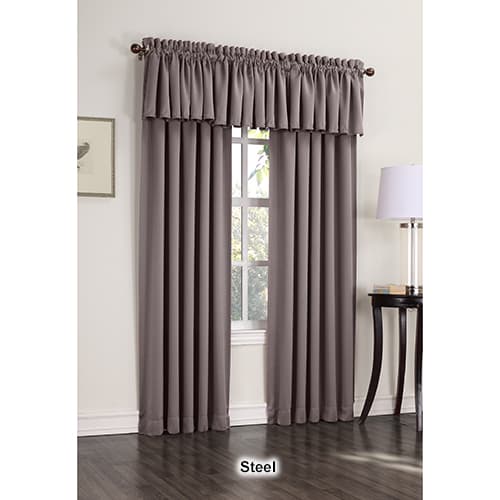 Madison Room Darkening Rod Pocket Curtain Panel is a contemporary style to enhance decor that blocks out 99.8% of light for better sleep, is energy saving, minimizes outside noise for more privacy. 100% Polyester. Machine wash. Tumble dry. 2.5" rod pocket. 1 Panel per package. Sizes: 54"x54", 54"x63" and 54"x84". Shown: Two 84" panels and two valances. Complete the look with item #51205.