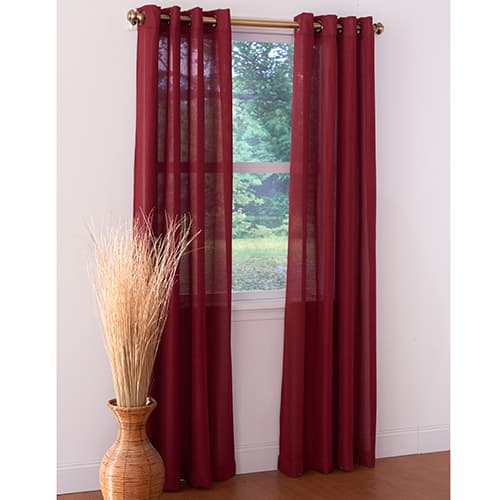 This solid color fauxcurtain panel can be used alone or combined with more decorative panels. 100% Polyester. Machine wash cold, gentle cycle. Use only no-chlorine bleach when needed. Tumble dry low. Iron on lowest setting if needed. 1 Panel per package. Size: 52x84 or 52x63. Shown: Two 84" Panels.