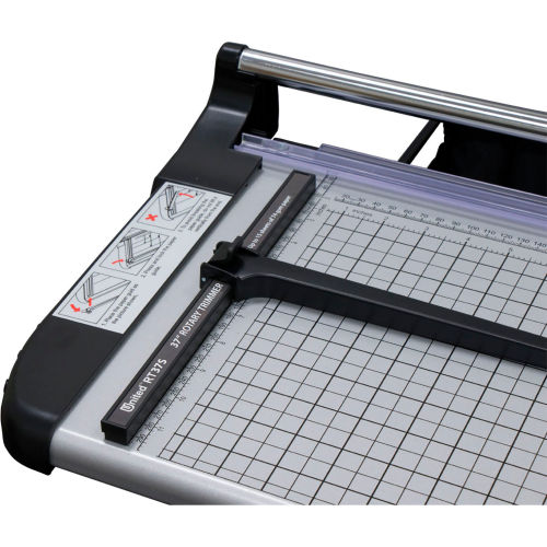 United's RT37S rotary paper trimer is designed for accuracy, durability and safety. The self-sharpening rotary blade cuts in both directions and is housed in a rugged cutting head which provides a high level of safety. The full length paper clamp automatically engages as the blade passes by for accurate cuts every time. The RT37S is constructed with a rugged steel base and stand, standard/metric alignment grid, a locking side guide for precise alignment and a fabric catch tray for easy cleanup of paper trimmings. The United RT37S cuts stacks up to .039" and up to 10 sheets of paper at a time.