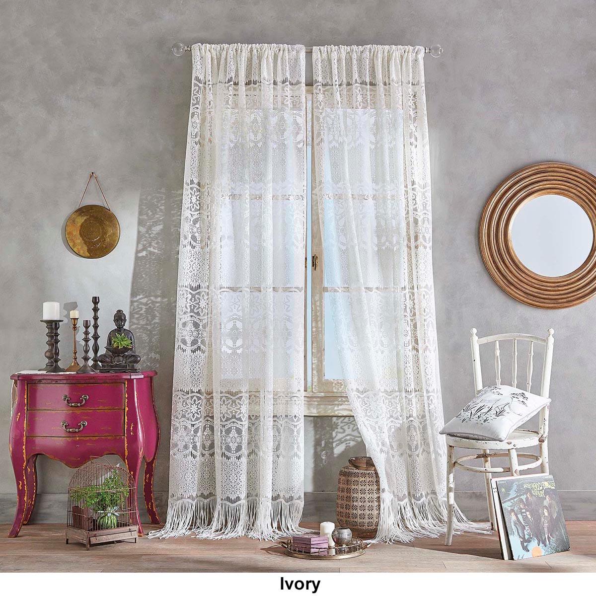 Boho Lace Pole Top Rod Pocket Sheer Panel Curtain