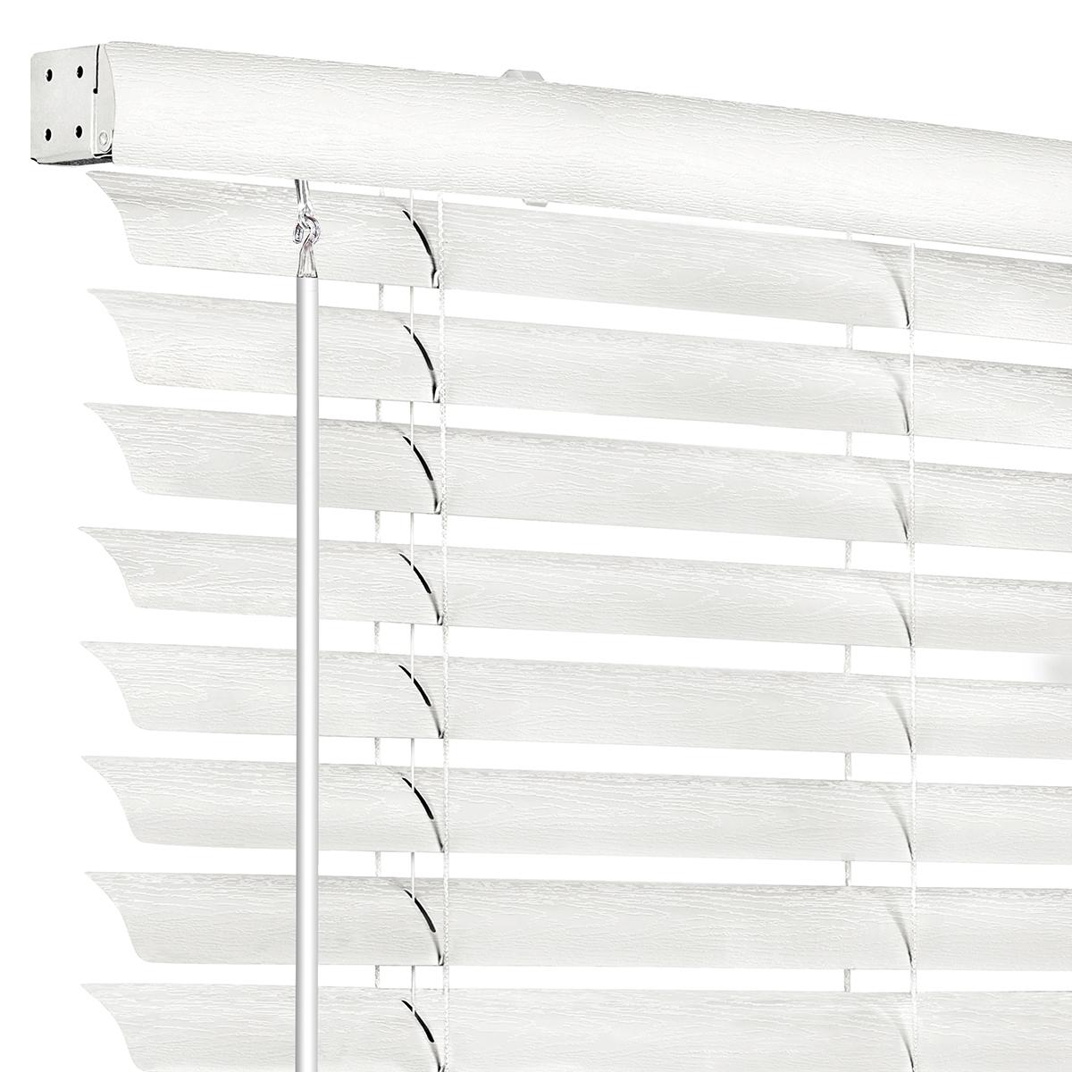 The Achim Luna GII cordless vinyl plantation blinds provide a fresh and dramatic look to any room. Its light filtering vinyl slats will not chip, dent or fade and are lightly embossed with a wood grain texture. They feature a tilt wand and cordless lift, making it safe around children and pets. To operate simply lift or lower the bottom rail to raise or lower the blind, control the amount of light by twisting the wand to open and close the slats. It's matching 2 inch valance is removable. The sturdy all-metal mounting brackets are designed for installation inside the window frame or outside the window frame. The actual width of the blind is the same width as ordered See Buying Guide for measuring guidelines Simply lift bottom rail to raise blind or pull down to lower Includes matching removable valance Includes all hardware and installation instructions This item requires oversize delivery. Please refer to the Order Summary in the Shipping step at checkout for delivery charge.