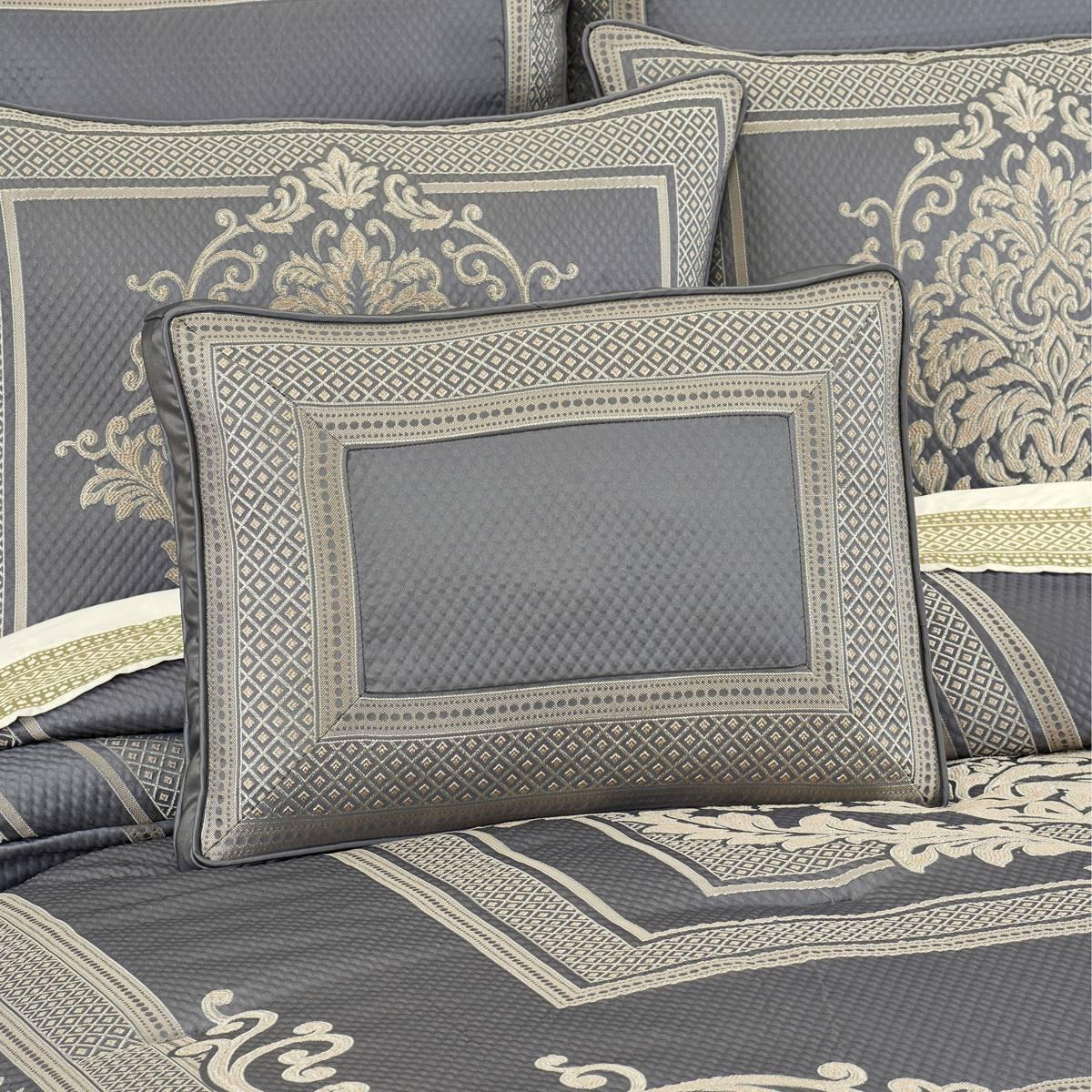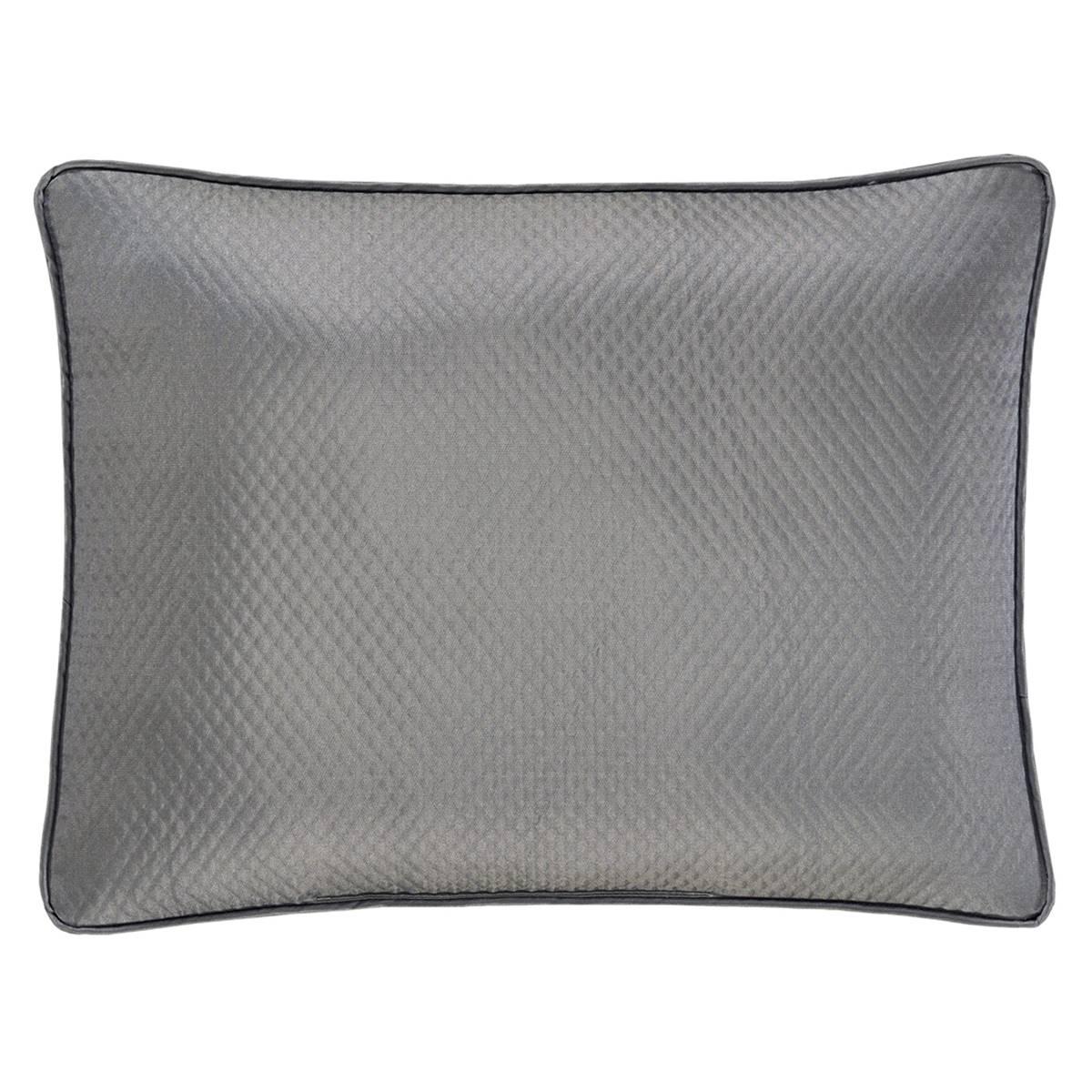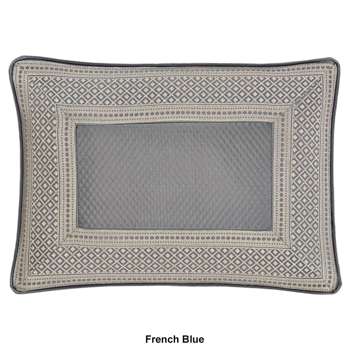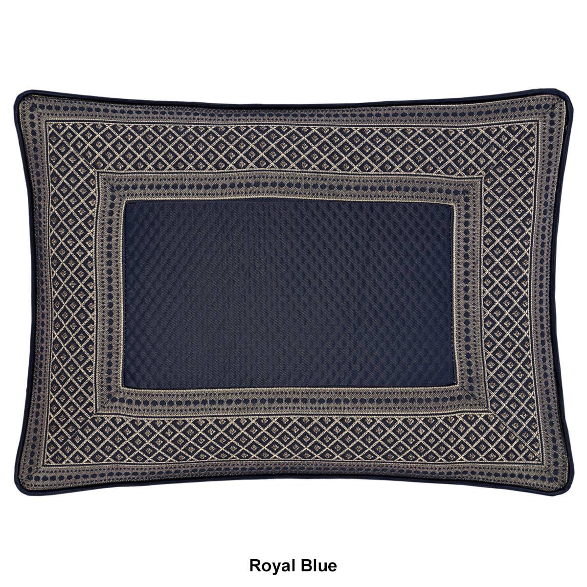The J. Queen New York Excelsior boudoir decorative pillow is intricately designed with a woven diamond border in a blue color. The gusseted boudoir reverses to a coordinating plush satin fabric and coordinates beautifully with the Excelsior bedding collection.