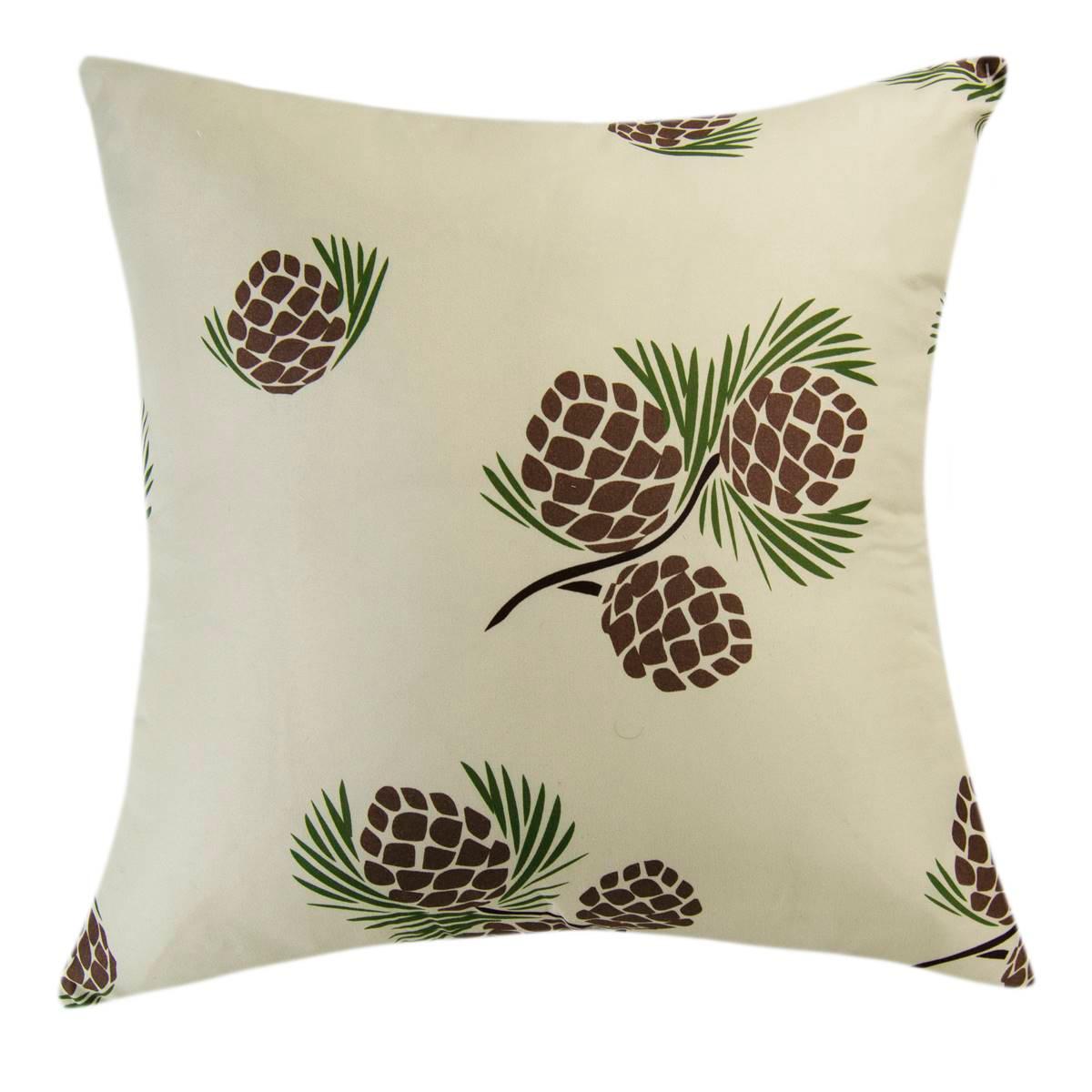 This lovely, reversible Donna Sharp Your Lifestyle decorative pillow features blue, grey, and ivory stripes on abackground. The reverse features a printed pinecone motif. Coordinates with Donna Sharp's Wilderness Pine bedding collection. Care: Hidden zipper for easy removal. Machine wash cold. Do not bleach. Tumble dry low. Material: Polyester. Cotton cover. Rayon decoration.