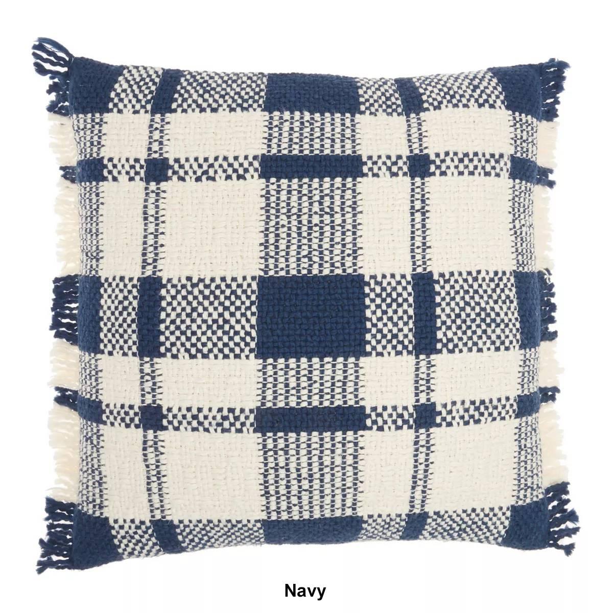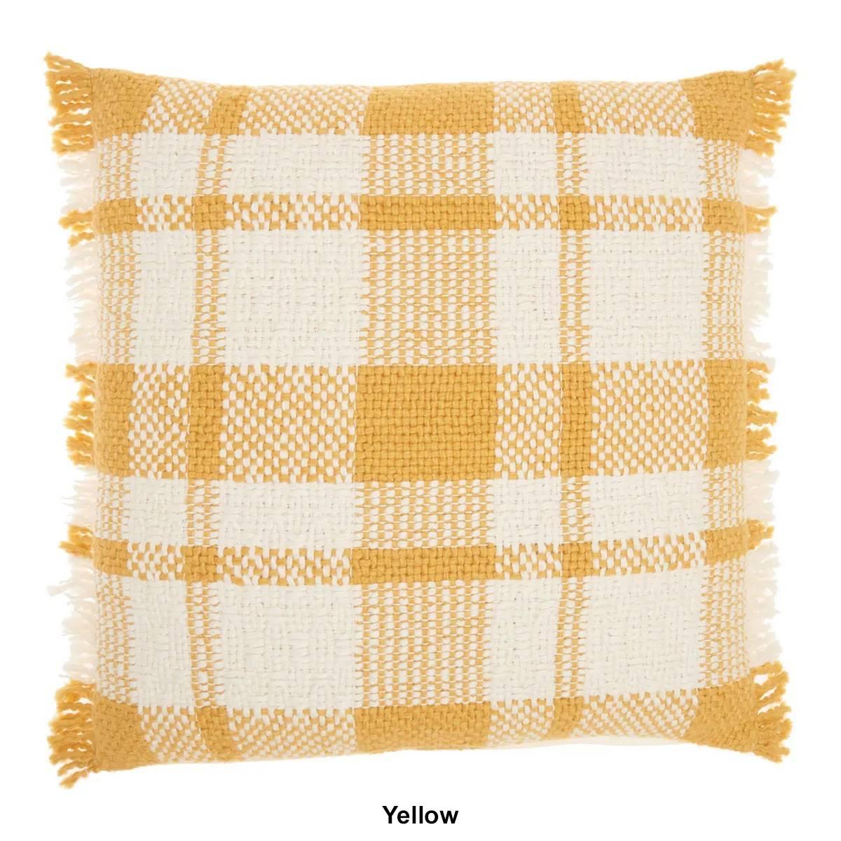 Kathy Ireland Woven Plaid Brush Fringe Decorative Pillow - 20x20