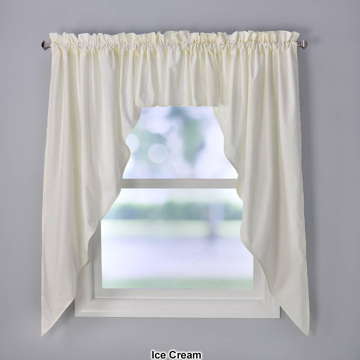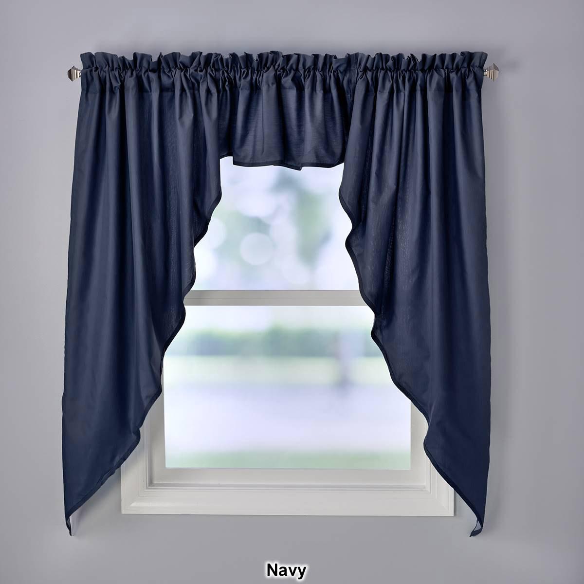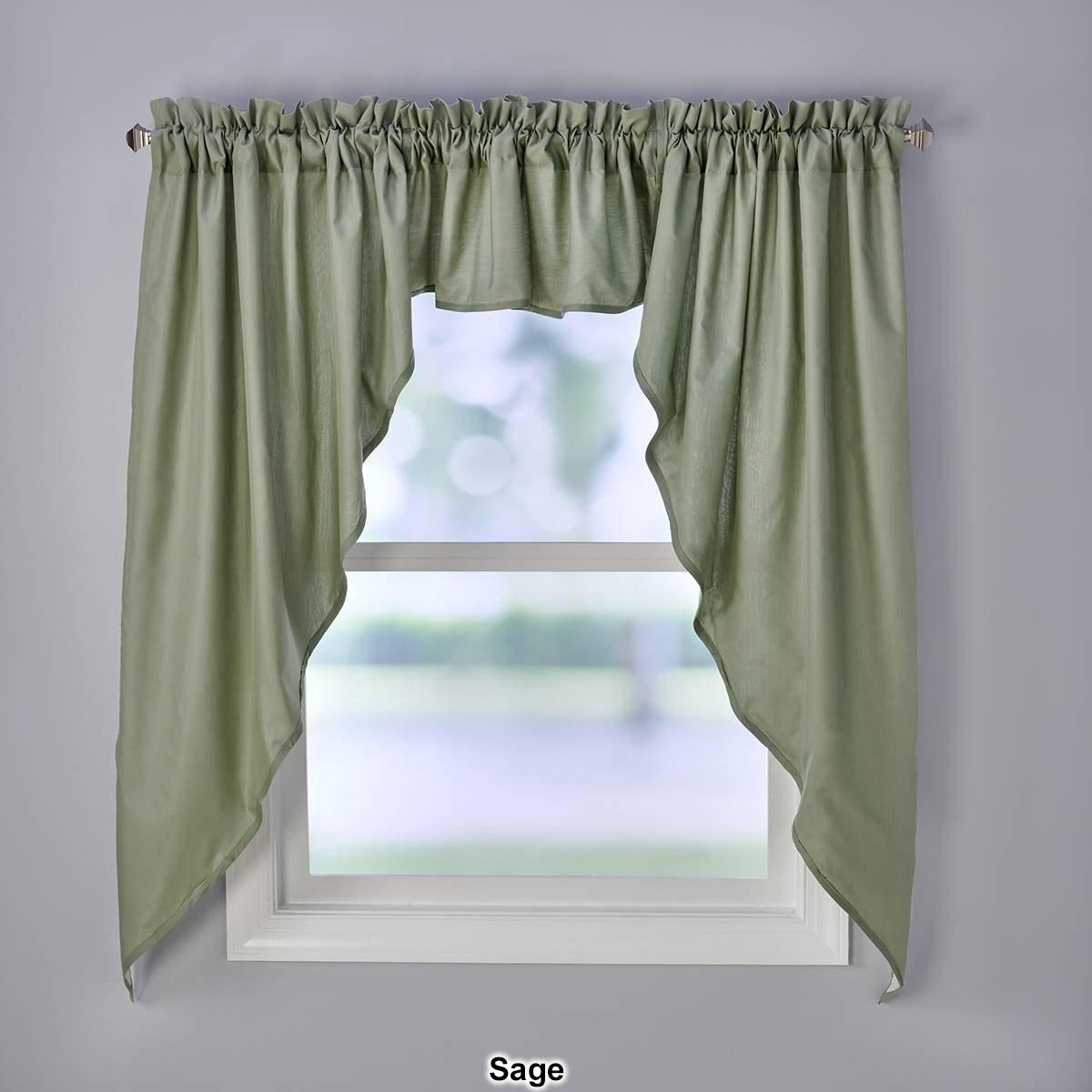 Includes 1 pair of swags and 1 filler valance. This set will complete your window or can be used as a stand alone top treatment. 70% Polyester, 30% Cotton. Machine wash. Size Total width of all 3 pieces 126x36. 1 Set per package. Shown: One valance and one jabot set.
