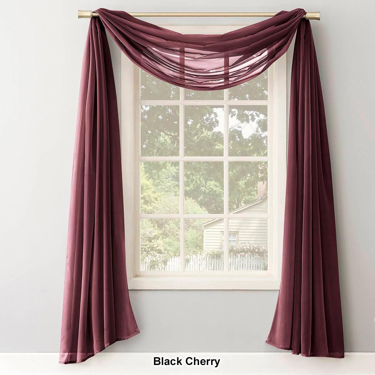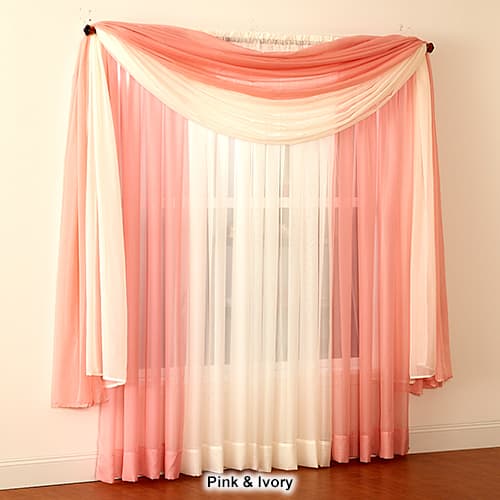 New and improved versatile all-purpose sheer is a true high-twist voile. Roma II will provide an elegant covering for your window while filtering in the sunlight. Can be used alone or over sheers. 100% Polyester. Machine wash warm, delicate cycle. Do not bleach. Tumble dry low. Warm iron as needed. 1 Scarf per package. Size: 59"x216". Shown: Two 84" panels and one 216" scarf.