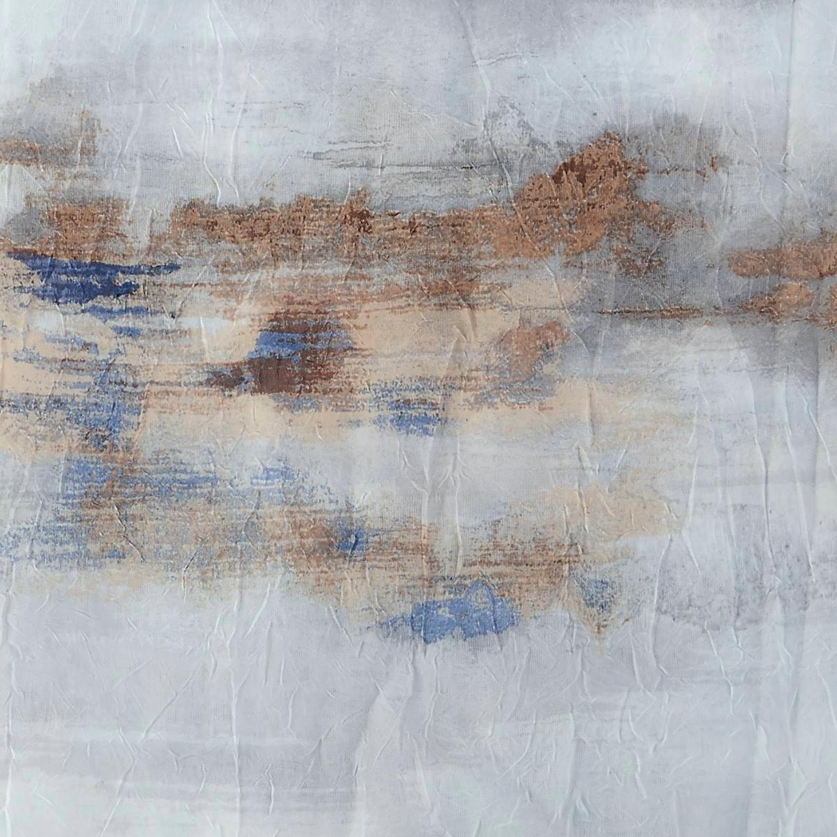 Nebula is a cool abstract on a crushed voile sheer that evokes the feeling of a dusky sky. It provides privacy while allowing light to filter into the room. This look easily works with many decors. Use alone or as a complement to a solid treatment. Photo shows two 50x84 panels, each sold separately, to complete the look. Sizes: 51x63 and 51x84 1.5-inch rod pocket can be hung with a standard or decorative rod 3-inch bottom hem.