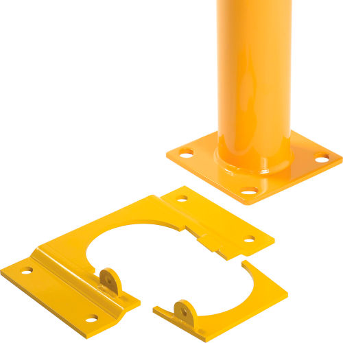 ✓ Removable plastic cap allows concrete to be filled inside for extra reinforcement. ✓ Chain slots help connect to similar bollards to help form a more established barrier. ✓ Floor mountable and includes removable base. Provide equipment protection and designate where industrial vehicles cannot enter with The Global Industrial Steel Bollard with Chain Slots & Removable Cap. This bollard is ideal for protecting doorways, corners, and industrial equipment. All welded steel construction. Safety yellow powder coat finish provides strong visibility. Height: 24". Base Thickness: 3/8". Resilient 12 Gauge Steel. Moderate weight allows easy floor mounting.