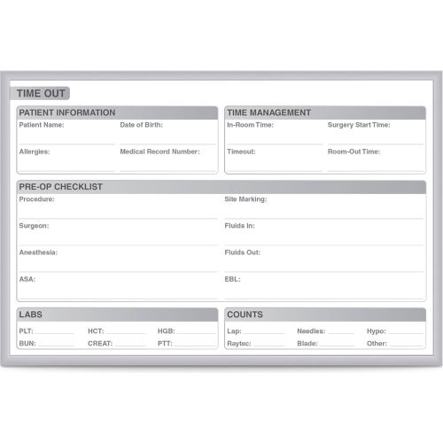 Ghent's graphic whiteboards are visually enhanced to encourage communication and collaboration. Ghent's dry erase boards can be used anywhere in your hospital with our specially designed patient room boards, time out boards, and OR scheduling boards. The graphics on our erasable boards improve communication and reduce anxiety for patients and employees. The entire surface easily wipes off with a soft cloth, disinfectant wipe, alcohol or water. Ghent's graphic whiteboards are resistant to bacteria and germs, which helps with infection prevention. Each board comes in our sleek 1/4" aluminum frame and includes our detachable SmartPak tray. Boards larger than 3'x4' come with a black marker, and eraser. Graphics are produced in gray to seamlessly match any interior and will never stain, ghost or fade. Ships to you in Ghent's worry-free packaging, designed specifically for shipping whiteboards. Ghent's graphic non-magnetic whiteboard carries a 10-year warranty and is made in the USA. Features: Sleek 1/4" aluminum frame to match gray graphicsResists staining and ghosting and graphics will not fadeDetachable SmartPak tray comes with every boardResistant to bacteria and germs, which helps with infection preventionCarries a 10-year manufacturer warranty Learn More About Ghent.