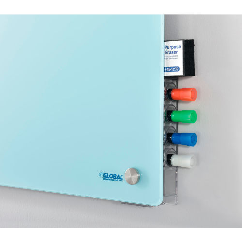 Global Industrial Magnetic Glass Dry Erase Board - 48"W x 36"H - Seafoam.