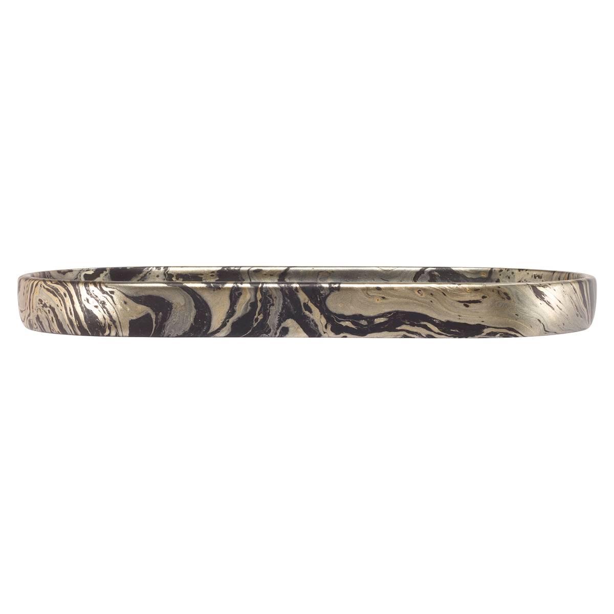 The Nicole Miller Harper vanity tray is decorated with a beautiful gold andmarble-look decal that wraps the entire piece. The water decal process makes each piece unique, adding to the beauty of the collection. Made of durable resin.