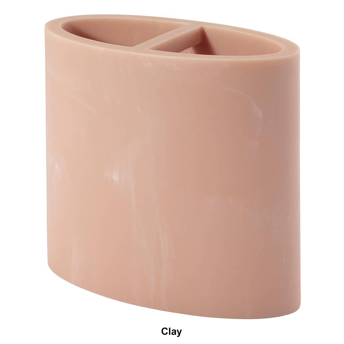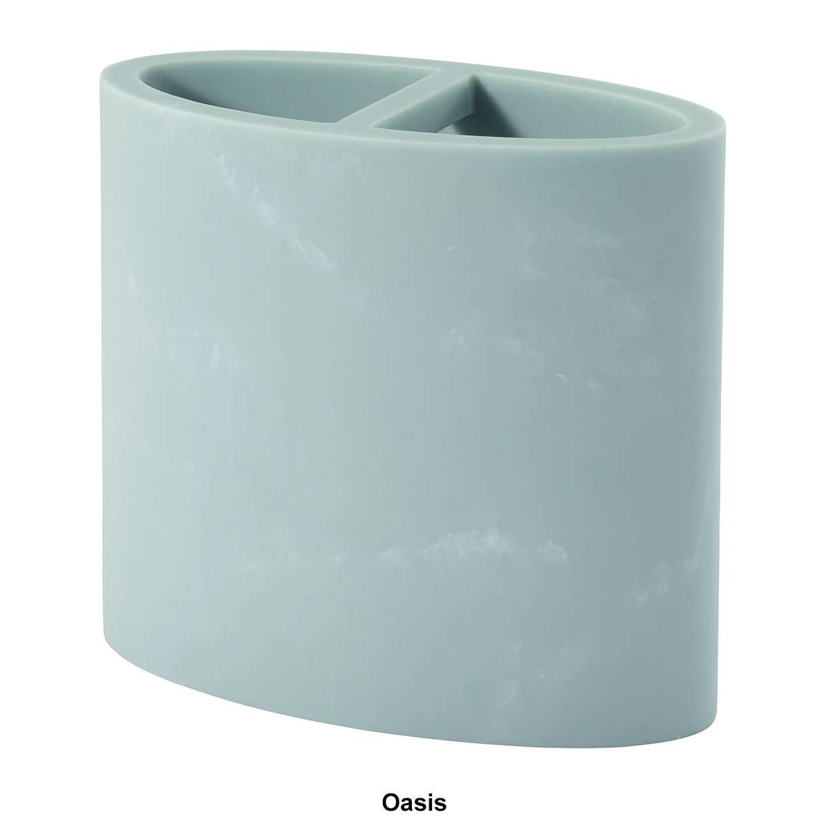The Nicole Miller Kendall Toothbrush Holder features a marble-look design. It is made of durable resin for easy care and long life. Coordinating accessories, shower curtains, towels, and rugs are available.
