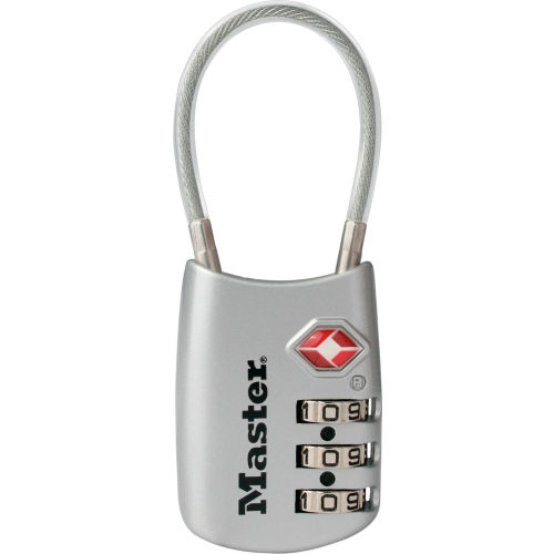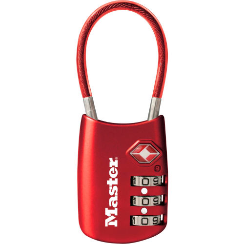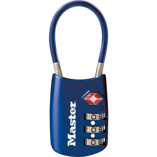 Master Lock TSA-Accepted Combination Locks Allow You To Create Your Own Combination For Personalized Security. These TSA accepted locks allow TSA screeners to inspect and relock baggage without damaging the lock. Flexible cable resists abuse from airport luggage handling equipment. 3-dial combination can be personalized to set your own combination. Made using a durable 1-1/8"W metal body. Shackle measures 1/8" diameter x 5/8"W x 1-1/2"H shackle. Price for each lock. Assorted colors of Black, Blue, Red, and Silver . - Pkg Qty 4.