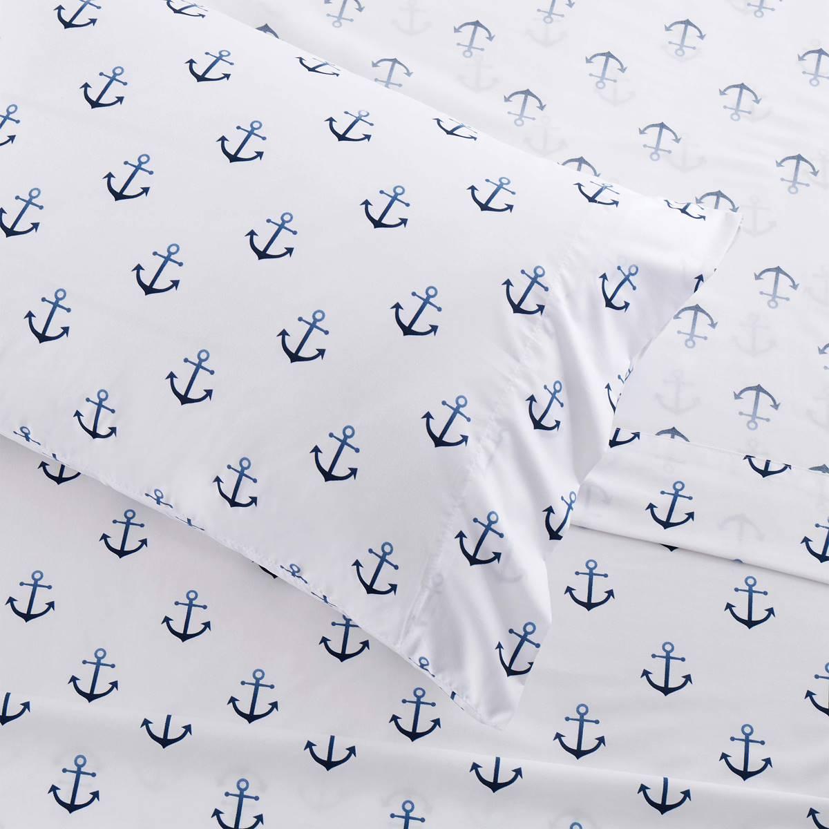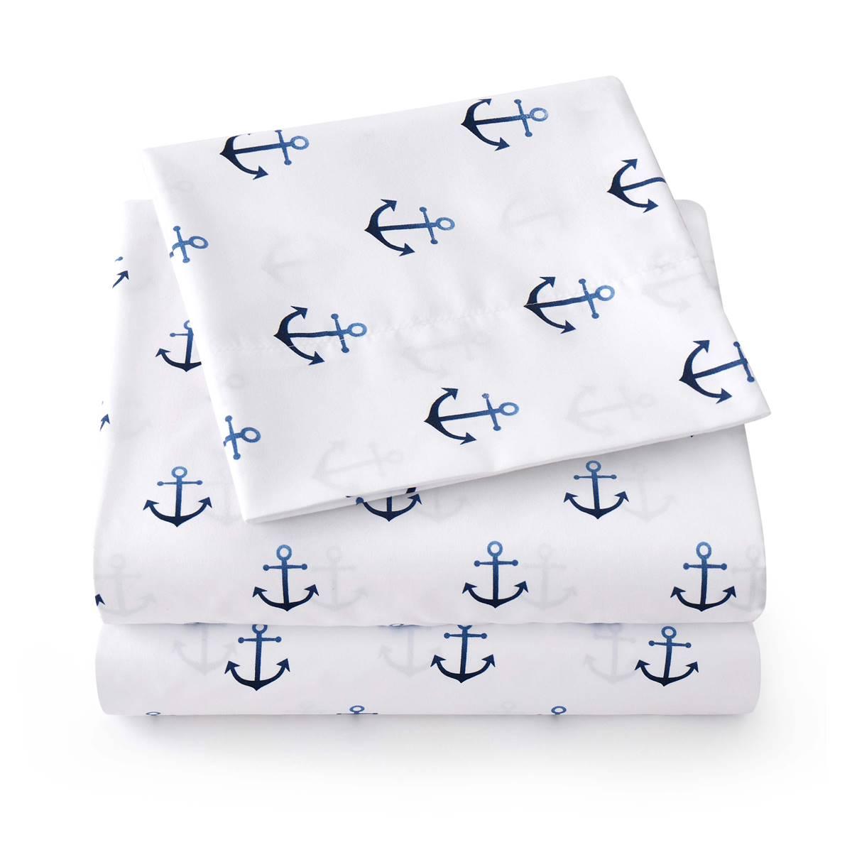 Ahoy, parents and young adventurers! Introducing the Sweet Home Collection ship anchor kids microfiber sheet set. The perfect bedding solution for your little sailors. Each set includes everything you need to transform your child's bedroom into a nautical haven. Crafted from ultra-soft, double-brushed microfiber, this flat sheet ensures a silky-smooth and comfortable surface for your child to snuggle into at night. The fitted sheet is designed to stay securely in place, with deep pockets to fit mattresses up to 14 inches thick and four corner straps ensuring a snug and wrinkle-free fit on their mattress. Set sail for a good night's sleep and create unforgettable bedtime adventures with the ship anchor kids microfiber sheet set. Deep Pocket, fits up to 16-inches. Twin set included: (1) 39" x 75" fitted sheet, (1) 66" x 96" flat sheet, and (1) 20" x 30" pillowcase Twin XL set included: (1) 39" x 80" fitted sheet, (1) 66" x 102" flat sheet, and (1) 20" x 30" pillowcase set included: (1) 54" x 75" fitted sheet, (1) 81" x 96" flat sheet, and (2) 20" x 30" pillowcases.