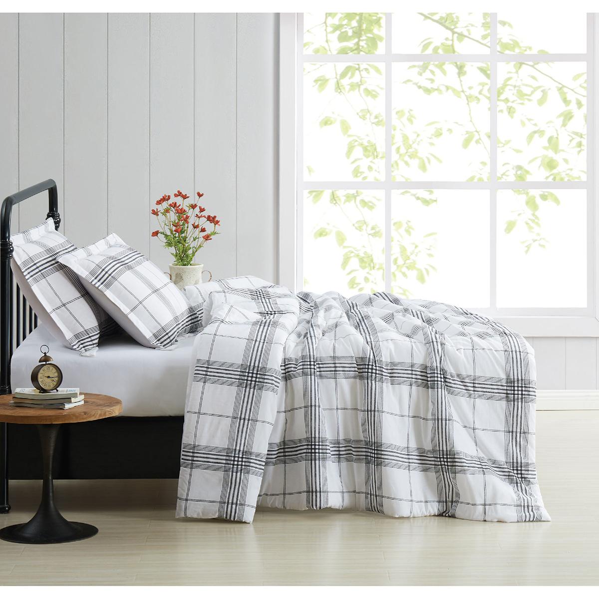 Dress up your bedroom with the Cottage Classics Cottage plaid comforter set. With a naturalbase cloth and a textured plaid print creating a casual yet classic look. This comfortable set includes matching shams that will make any room look great. Set Includes: (1) 68"x90" comforter and (1) 20"x26" standard sham Full/Queen Set Includes: (1) 90"x90" comforter and (2) 20"x26" standard shams King Set Includes: (1) 104"x90" comforter and (2) 20"x36" king shams.