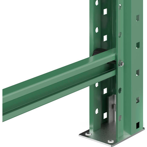 ✓ 13-gauge steel uprights, 15-gauge steel beams ✓ 33000 lb. total rated capacity, lb. shelf capacity ✓ Unslotted beams Improve storage in your warehouse, retail store, or manufacturing facility with the Global Industrial Bolted Pallet Rack Starter. The bolted teardrop upright frames come partially assembled for easy customer set-up, allowing for more flexible configuration and making it easier than ever to adapt to new storage environments. Designed to endure the most demanding of industrial conditions, this kit features heavy-duty 13-gauge steel uprights and high-strength 15-gauge steel beams. These uprights allow for height adjustments at 2" increments, while the beams have a 1-5/8"H step beam design to accommodate cross bars and decking. With the use of 3-button studs on the connector plate ends and a self-engaging spring-loaded safety clip, these beams securely connect to the upright frames. All uprights are equipped with 8.8 grade Tensile Strength Bolts, with limited threads, to prevent over-tightening. The standard, pre-punched footplates allow for easy anchoring and a recessed channel in the column's shape keeps the bolts and nuts safely away from products and people. If a component is damaged on the upright frame, repairs are only necessary on that element, making this a very economical product. This patent pending design allows for the uprights to be shipped knocked-down (KD), optimizing freight costs and storage space during transportation and storage. Limited 2-Year Warranty. 33000 lb. total rated capacity, higher than other pallet racking in the market. Capacity based on 36" beam shelf spacing. Disclaimer: If seismic conditions apply, verification of capacities must be confirmed with a seismic engineer. Global Industrial is not responsible for engineering, installation and/or application of this material. Global Industrial is not responsible for permits. It is the full responsibility of the customer to check the contents and quantities. The (lbs.) capacity rating (s) provided are for reference only. These ratings apply to static (non-seismic) conditions only. Starter unit includes (2) upright frames & (2) pairs of shelf beams Powder coat finish for long lasting service Tested to meet the ANSI MH16.1 standards All nuts are 8.8 grade and feature serrated flanges to ensure they stay securely fastened with no extra maintenance Interchangeable with Teardrop styles of the following manufacturers: Interlake, Kingway, Steel King, USP, Wireway/Husky, Unarco, and Speed Rack Factory Direct Program: This program provides discount pricing on large orders. Products will ship directly from the factory to your desired location. For more information and pricing details, please contact your sales representative or call tel.:1.888.978.7759.
