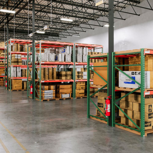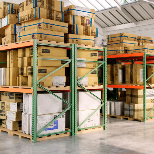 ✓ 13-gauge steel uprights, 16-gauge steel beams ✓ 33000 lb. total rated capacity, lb. shelf capacity ✓ Unslotted beams Improve storage in your warehouse, retail store, or manufacturing facility with the Global Industrial Bolted Pallet Rack Add-On. The bolted teardrop upright frames come partially assembled for easy customer set-up, allowing for more flexible configuration and making it easier than ever to adapt to new storage environments. Designed to endure the most demanding of industrial conditions, this kit features heavy-duty 13-gauge steel uprights and high-strength 16-gauge steel beams. These uprights allow for height adjustments at 2" increments, while the beams have a 1-5/8"H step beam design to accommodate cross bars and decking. With the use of 3-button studs on the connector plate ends and a self-engaging spring-loaded safety clip, these beams securely connect to the upright frames. All uprights are equipped with 8.8 grade Tensile Strength Bolts, with limited threads, to prevent over-tightening. The standard, pre-punched footplates allow for easy anchoring and a recessed channel in the column's shape keeps the bolts and nuts safely away from products and people. If a component is damaged on the upright frame, repairs are only necessary on that element, making this a very economical product. This patent pending design allows for the uprights to be shipped knocked-down (KD), optimizing freight costs and storage space during transportation and storage. Limited 2-Year Warranty. 33000 lb. total rated capacity, higher than other pallet racking in the market. Capacity based on 36" beam shelf spacing. Disclaimer: If seismic conditions apply, verification of capacities must be confirmed with a seismic engineer. Global Industrial is not responsible for engineering, installation and/or application of this material. Global Industrial is not responsible for permits. It is the full responsibility of the customer to check the contents and quantities. The (lbs.) capacity rating (s) provided are for reference only. These ratings apply to static (non-seismic) conditions only. Add-on unit includes (1) upright frame and (2) pairs of shelf beams Powder coat finish for long lasting service Tested to meet the ANSI MH16.1 standards All nuts are 8.8 grade and feature serrated flanges to ensure they stay securely fastened with no extra maintenance Interchangeable with Teardrop styles of the following manufacturers: Interlake, Kingway, Steel King, USP, Wireway/Husky, Unarco, and Speed Rack Factory Direct Program: This program provides discount pricing on large orders. Products will ship directly from the factory to your desired location. For more information and pricing details, please contact your sales representative or call tel.:1.888.978.7759.