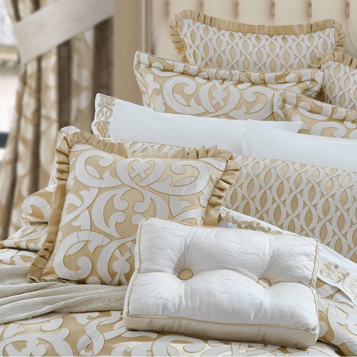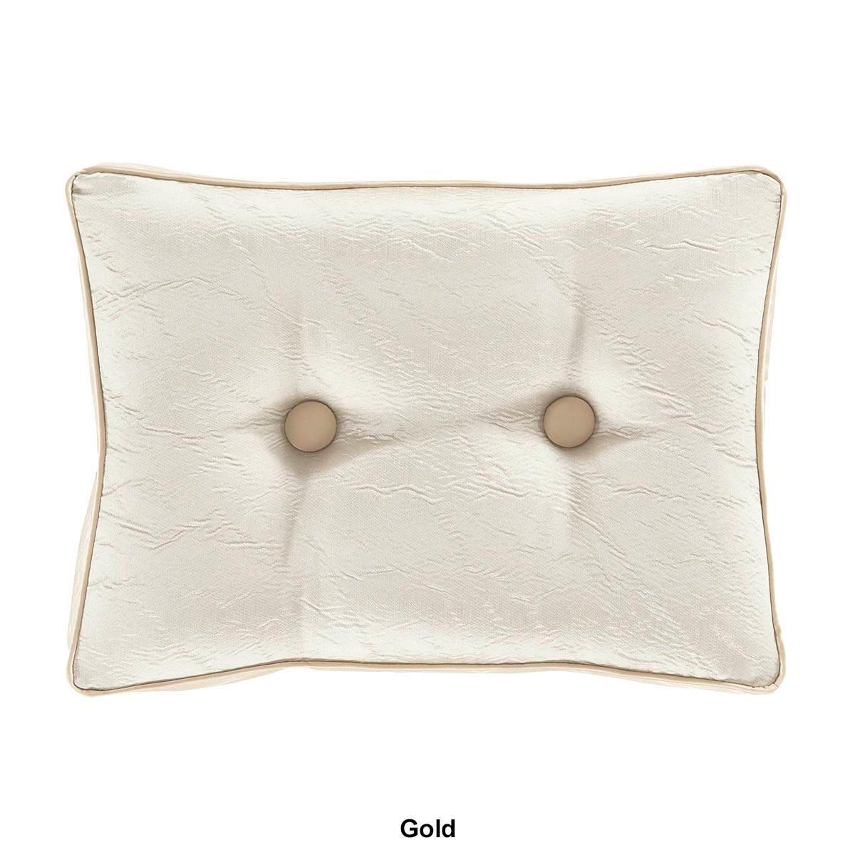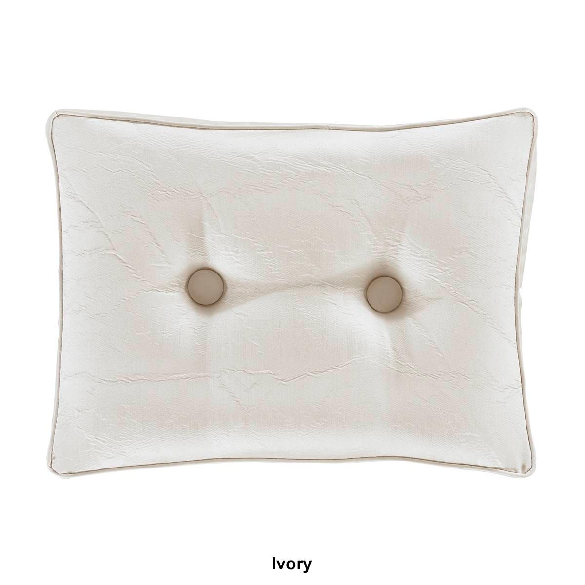 Add a simple yet sophisticated contrast to an elegant room with this J. Queen New York La Boheme boudoir decorative pillow. It is tufted on both sides with large satin-covered buttons. Framed all around with elegant satin trim. Includes: (1) Decorative pillow.