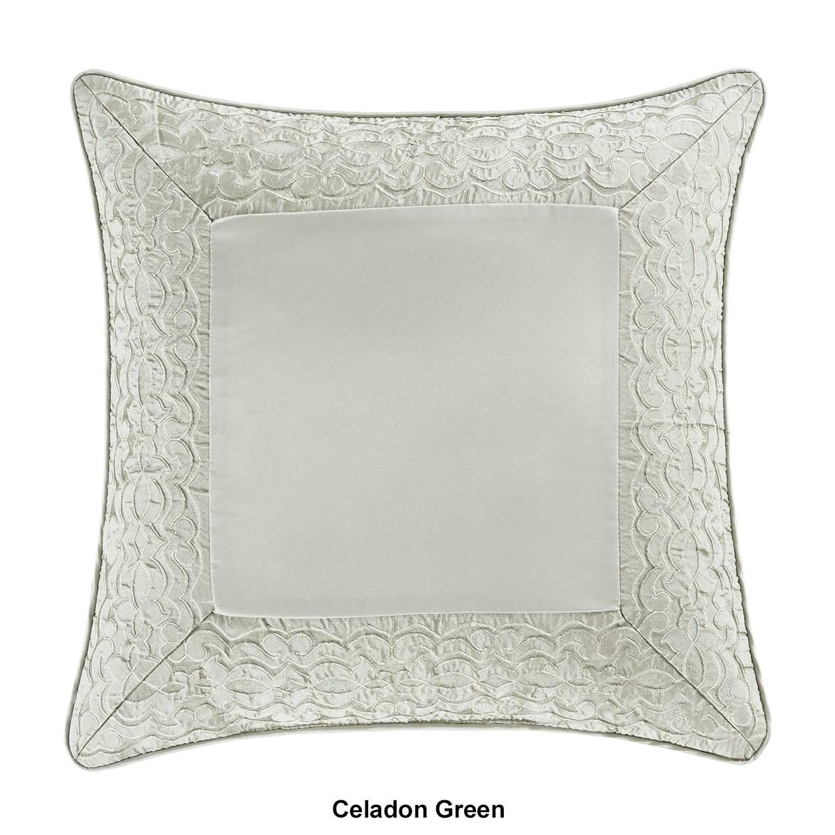 This J. Queen New York Surano decorative throw pillow is the perfect decorating accessory. It is framed and mitered with a woven damask border on the face, a plush tonal satin on the reverse, and trimmed on all four sides with satin piping. Includes: (1) Decorative pillow.