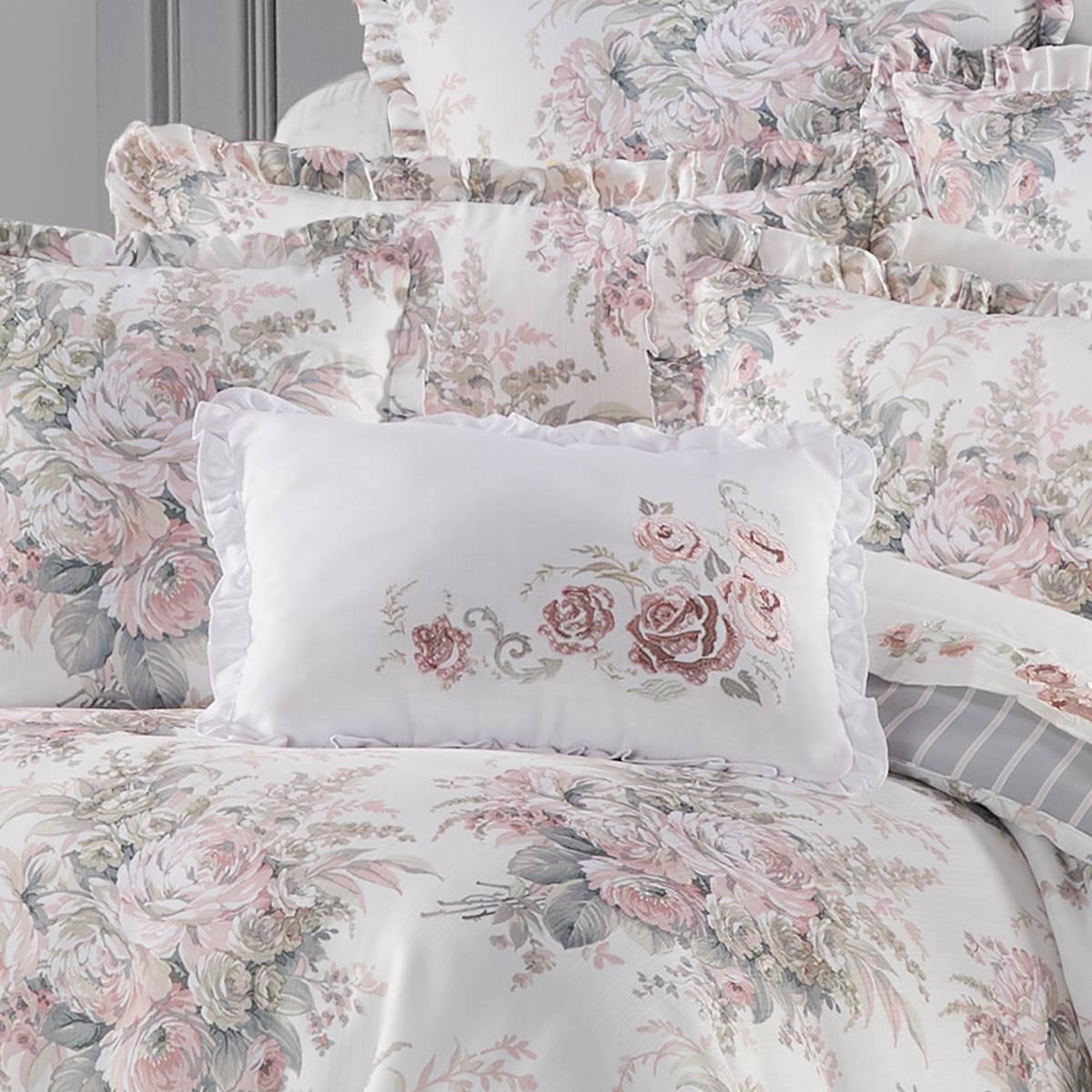 The Royal Court Estelle boudoir decorative throw pillow has a soft and delicate design. It has a textured cream fabric embellished with embroidered flowers. The pillow will bring a relaxing vibe to your bedroom. Includes: (1) Decorative pillow This item requires oversize delivery. Please refer to the Order Summary in the Shipping step at checkout for delivery charge.