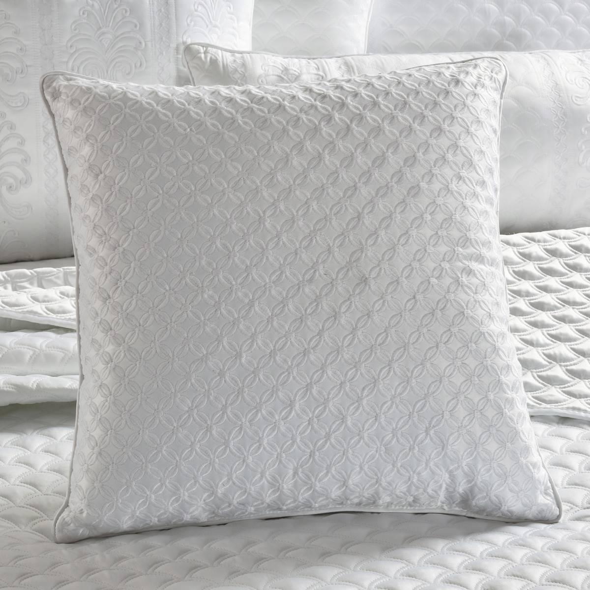 The J. Queen New York Lyndon decorative throw pillow has a subtle beauty to it that will give your room an upgrade. Crafted with a timeless all-over foulard embroidery and solid plush reverse accented with 1/4-inch satin piping for a fine finish. Includes: (1) Decorative pillow.
