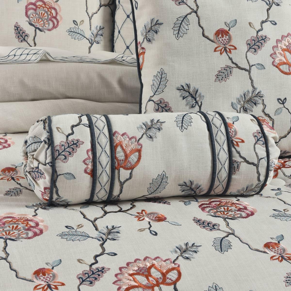 The J. Queen New York Parkview bolster decorative throw pillow is beautifully designed. Combining a lush floral embroidery with a natural linen textured fabric. The pillow is trimmed with a solid cord and frames a diamond embroidery on both sides of the pillow. Includes: (1) Decorative pillow This item requires oversize delivery. Please refer to the Order Summary in the Shipping step at checkout for delivery charge.