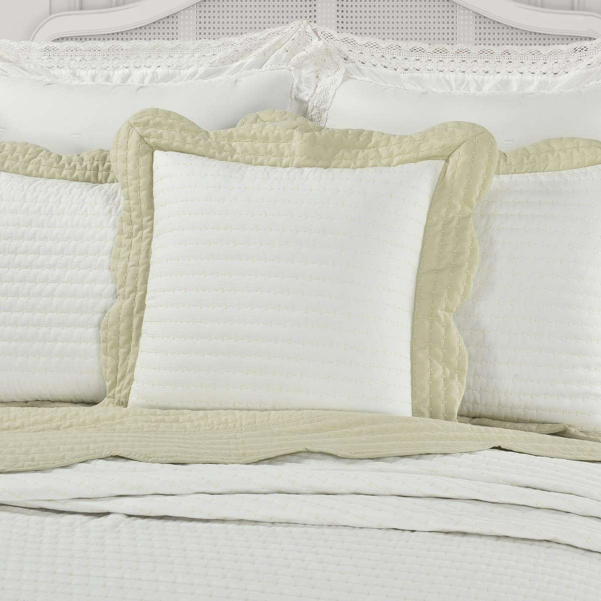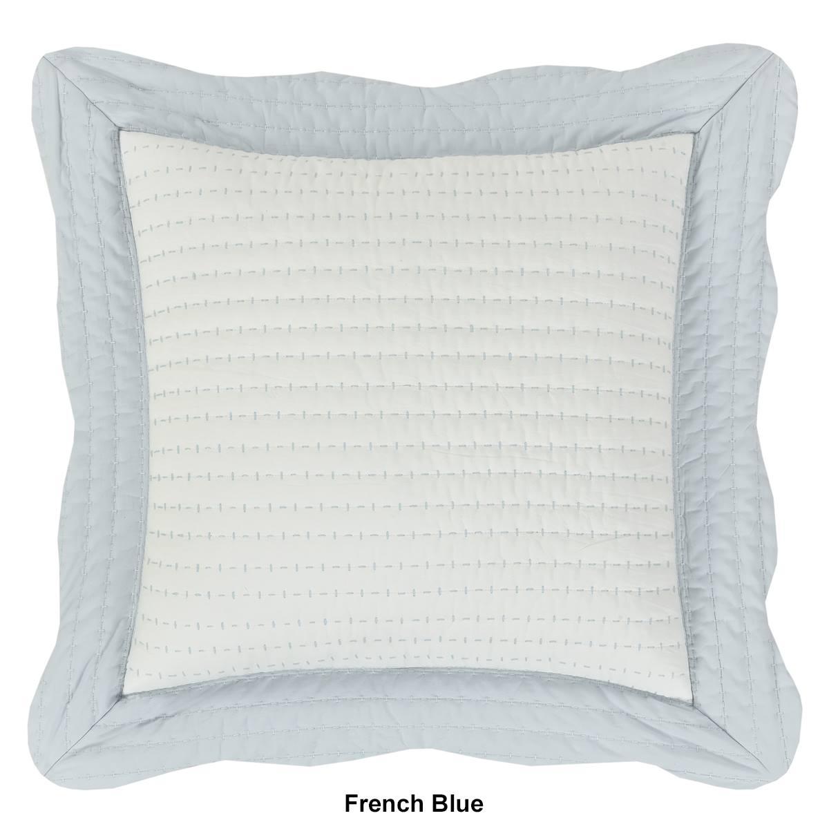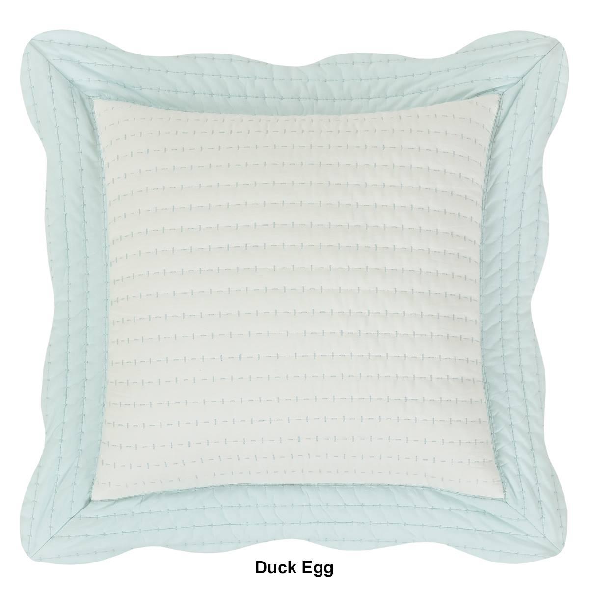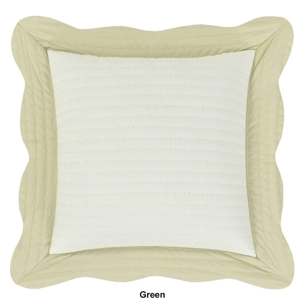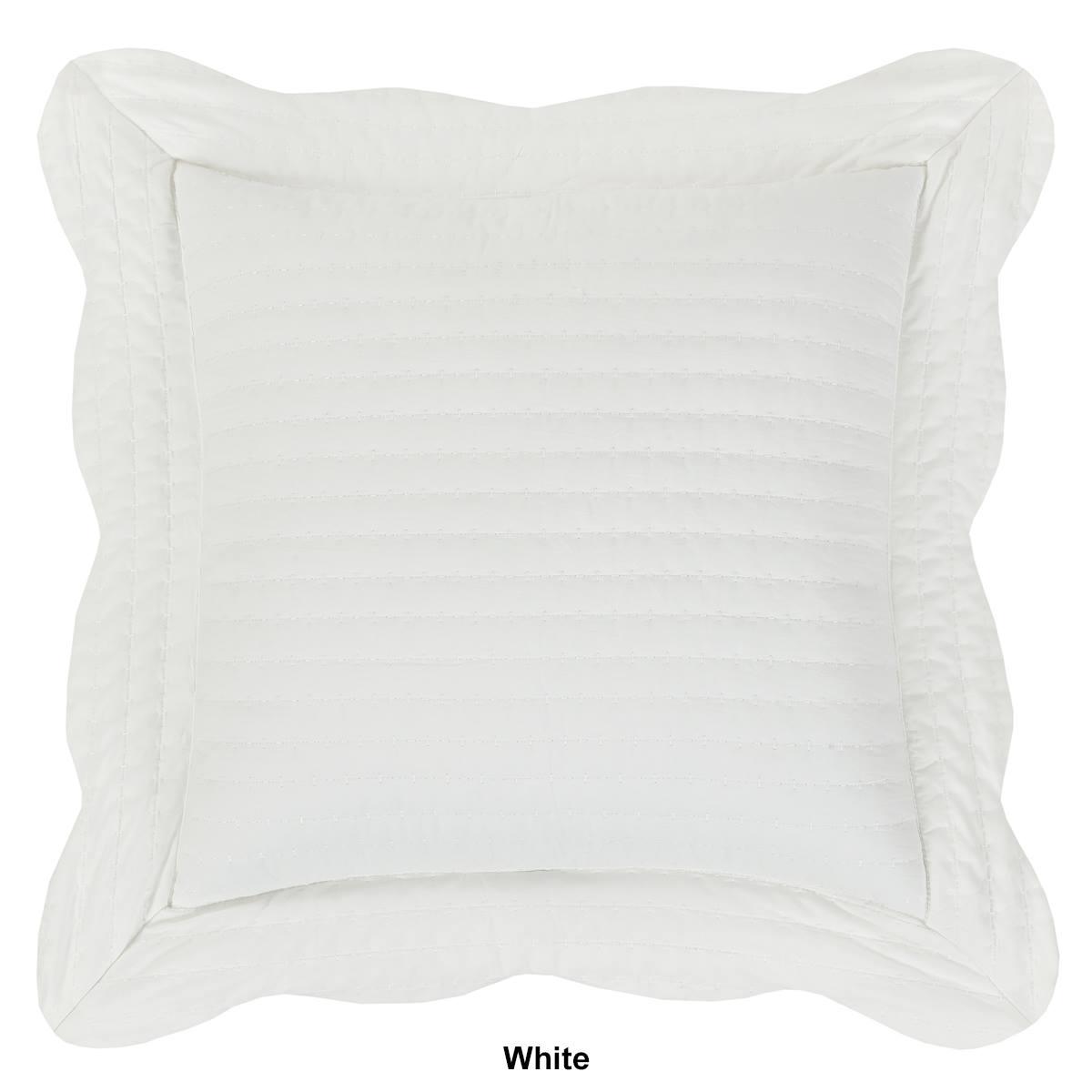 Bring Farmhouse charm to your home with the J. Queen Cottage Amherst throw pillow. Featuring detailed channel quilt stitching with a soft 3.5in. relaxed scallop flange trim. Constructed with soft, pre-washed 100% cotton to make this pillow is the perfect snuggling companion. Available in a choice of four colorways. The center is a true white, and the reverse fabric matches the solid-colored flange. Coordinates with the Amherst Collection (removable pillow insert included). This item requires oversize delivery. Please refer to the Order Summary in the Shipping step at checkout for delivery charge.
