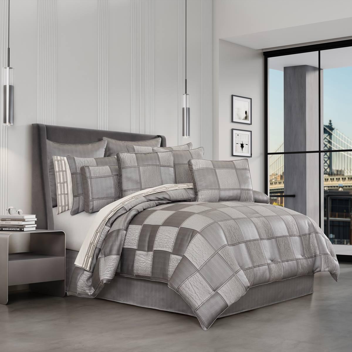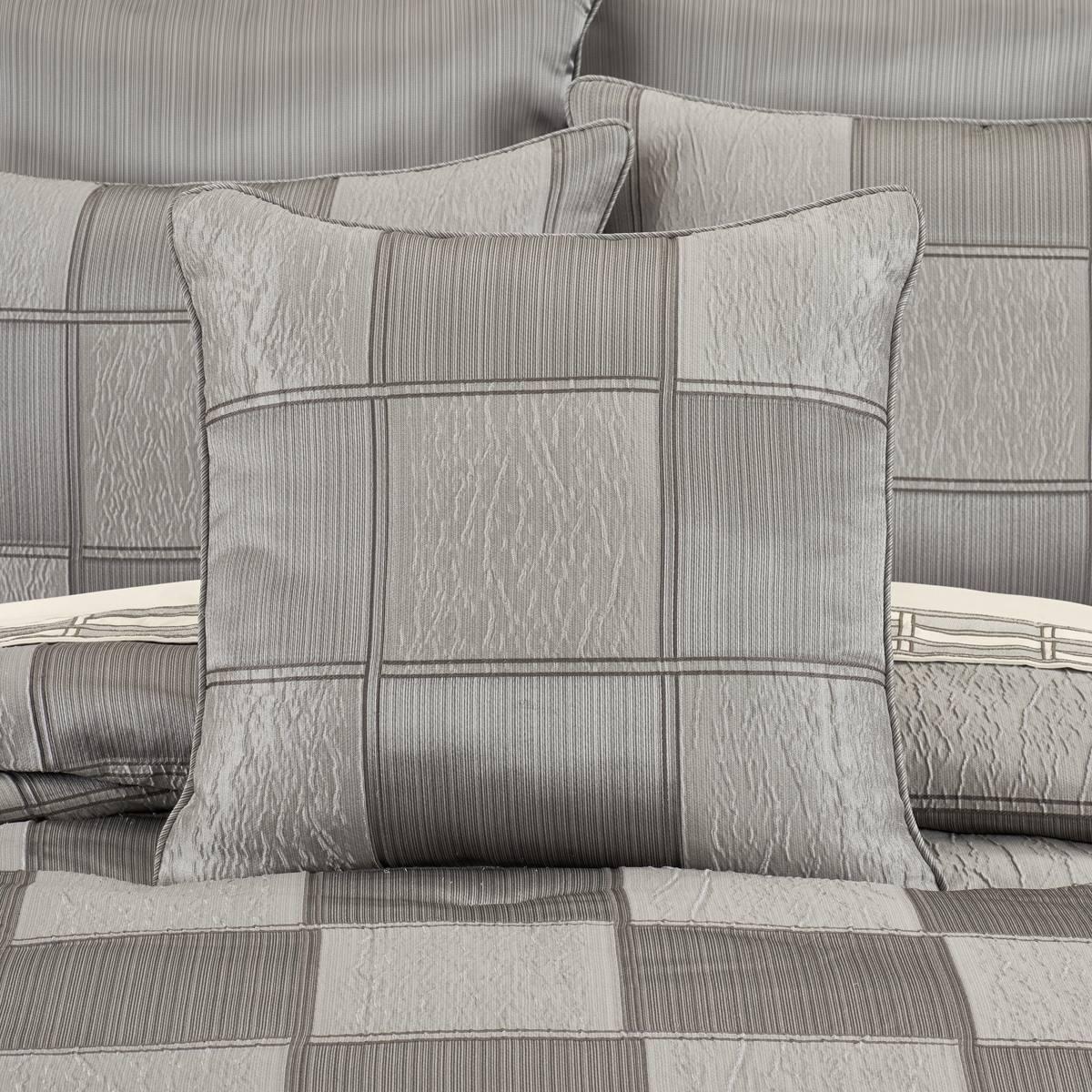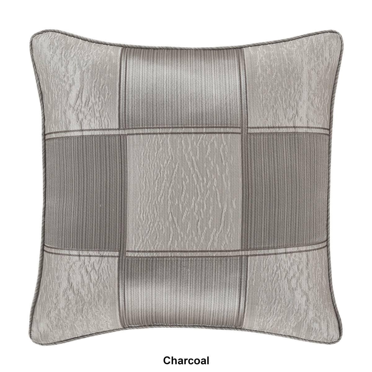 Bold, contemporary, and sophisticated. This J. Queen New York Brando square 20-inch decorative throw pillow displays a perfectly centered geometric block design in stunning metallic tones. It reverses to the stria warp satin and is finished with stria satin piping for a tailored finish. Pair this pillow with the J. Queen New York Brando bedding set for a fresh modern style. Pattern: Geometric Made from high-quality designer fabrics Limited Manufacturer's Warranty.