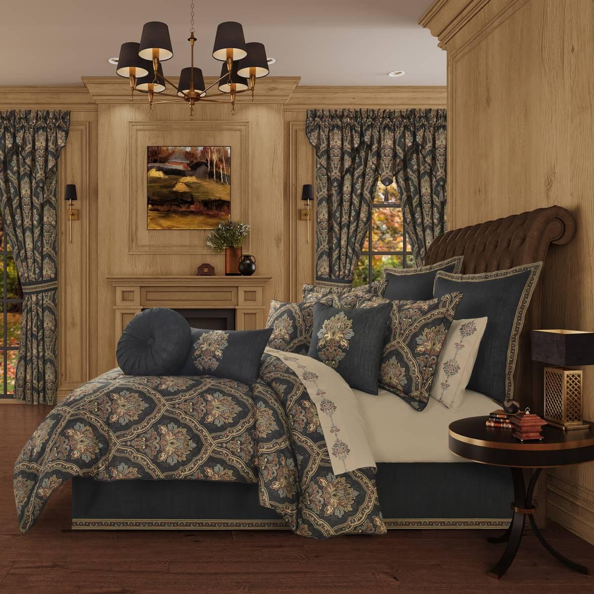 The J. Queen New York tufted round pillow features a two-toneand graphite stria fabric to create a one-of-a-kind accent to this bedding ensemble. These unique pillows are sewn by hand and are finished with a fabric-covered button on both sides. The gusset is constructed with braided detail to highlight the sophisticated details of the Michalina bedding ensemble (sold separately).