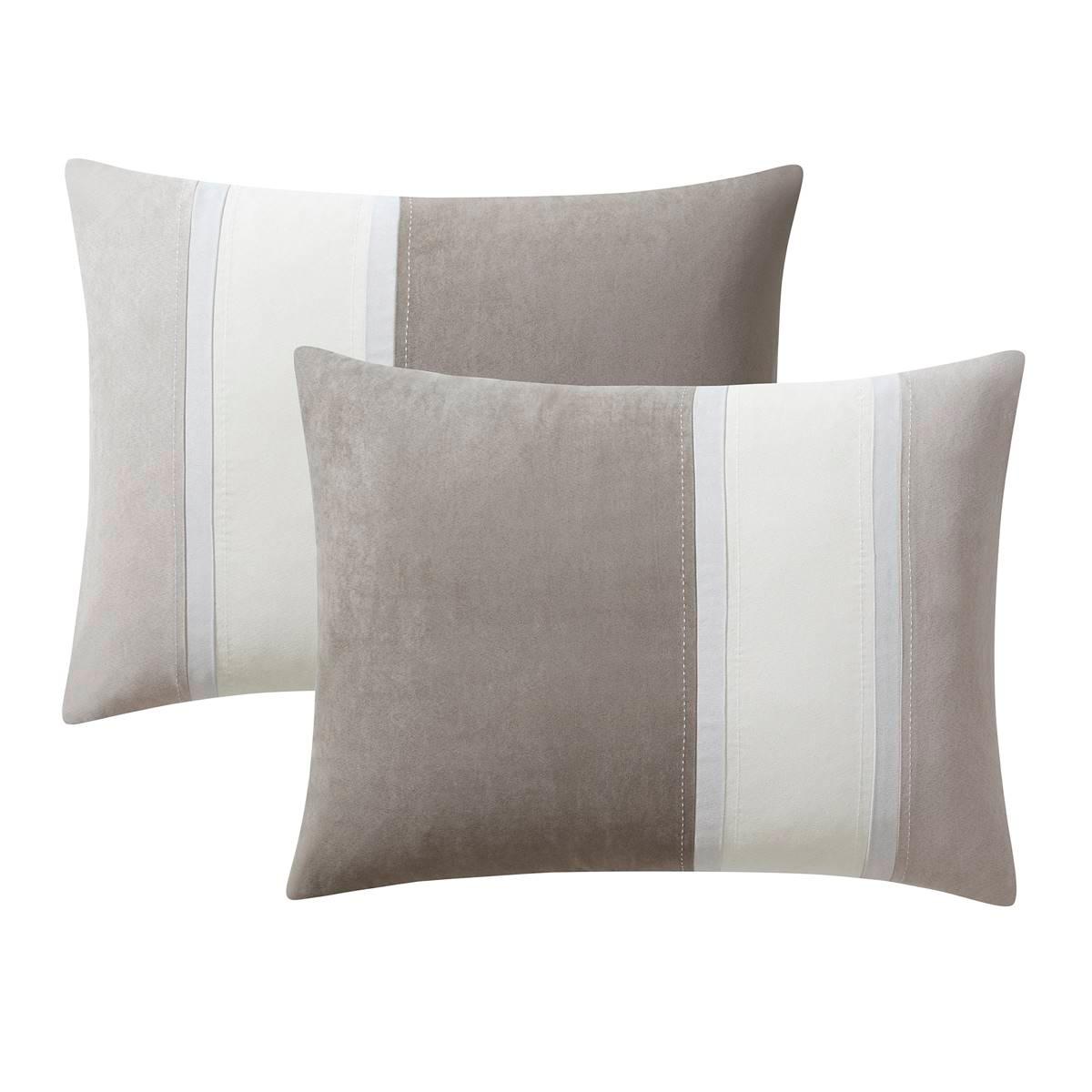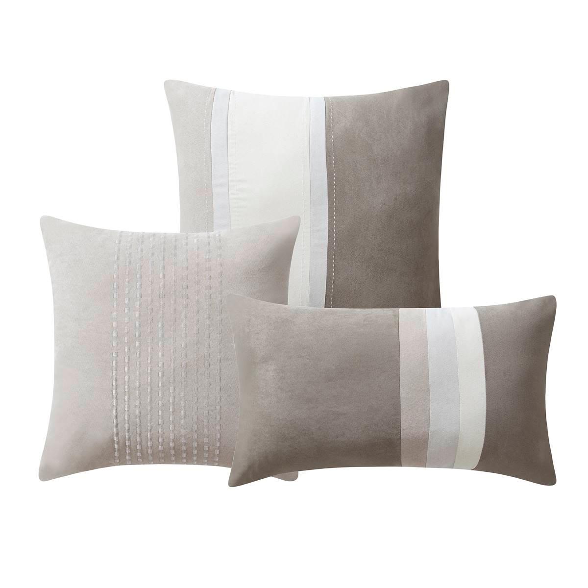 Give your bed a whole new style with this beautiful Sweet Home Collection Harveysuede seven-piece comforter set, complete with 1 comforter, 2 pillow shams, 1 bed skirt and 3 decorative pillows. The reversible comforter features taupe, beige, grey and white sections. The comforter and shams reverse to a solid Beige. Match this set with your favorite sheets! This item requires oversize delivery. Please refer to the Order Summary in the Shipping step at checkout for delivery charge. Queen set included: (1) 90" x 90" comforter, (1) 60" x 80" bed skirt, (1) 20" x 12" rectangular pillow (2) 18" x 16" square pillow, and (2) 20" x 36" standard shams set included: (1) 104" x 90" comforter, (1) 78" x 80" bed skirt, (1) 20" x 12" rectangular pillow (2) 18" x 16" square pillow, and (2) 20" x 36" king shams.