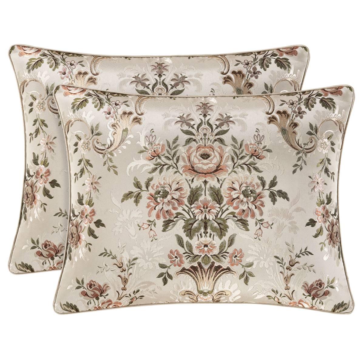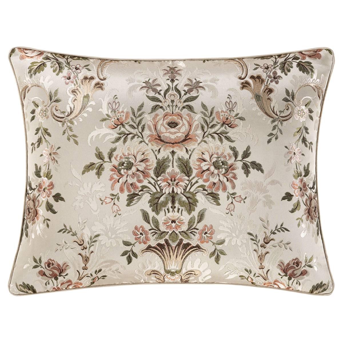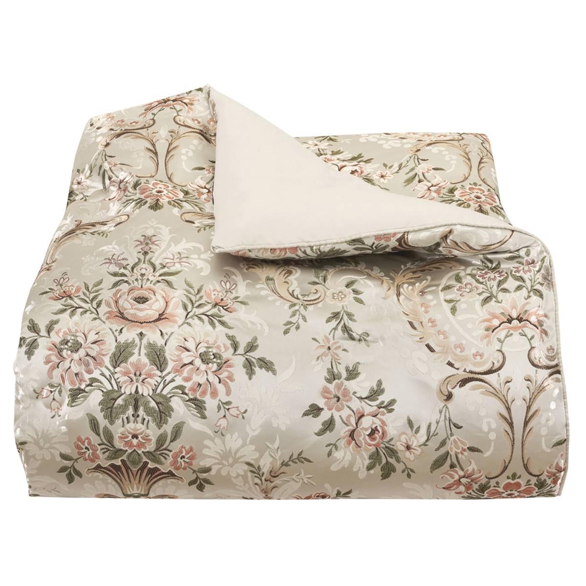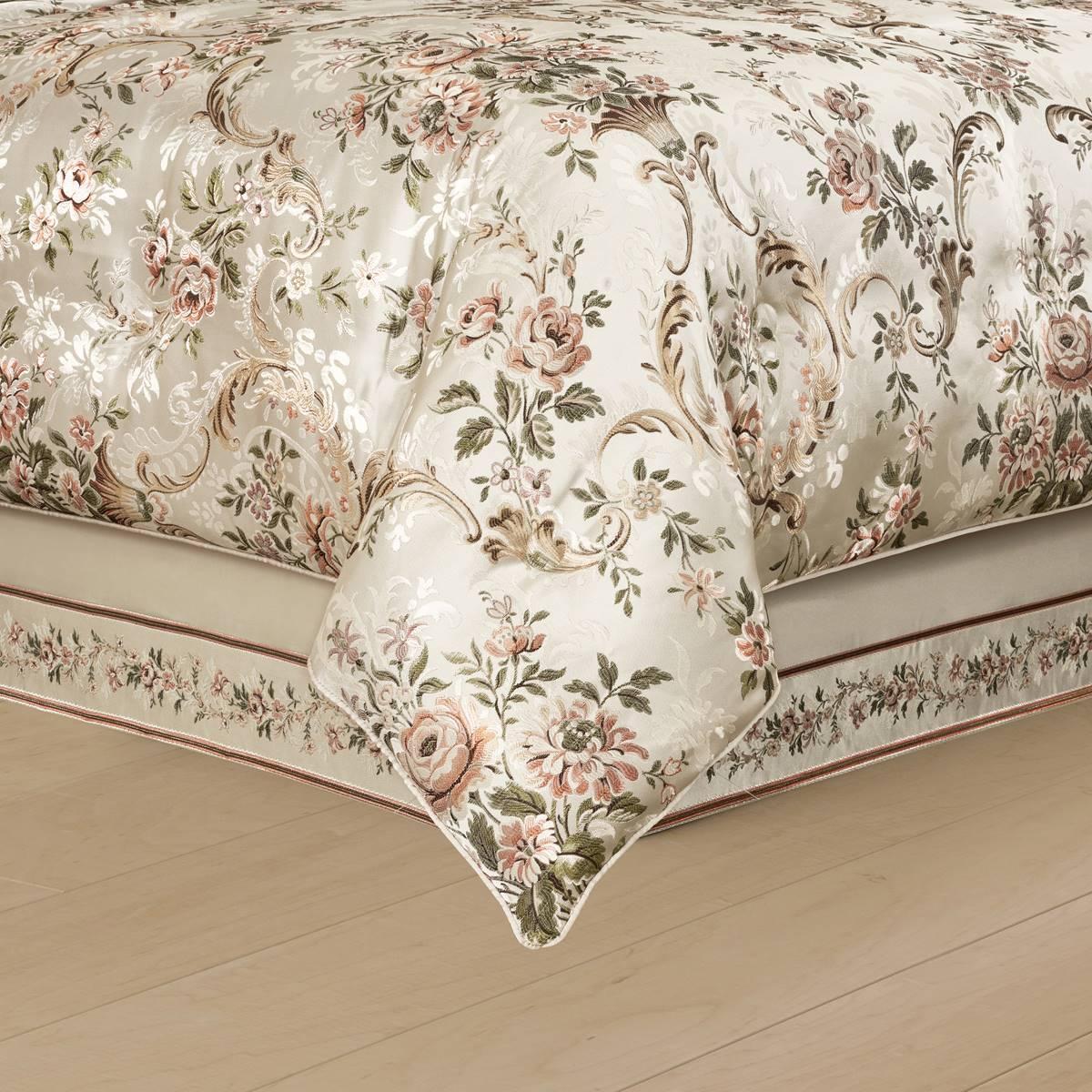 Create your dream oasis with the luxurious J. Queen New York Pecora 4-piece reversible comforter set. The comforter is constructed with a woven jacquard floral bouquet pattern coral, and green tones. The bed skirt uses a coordinating woven floral border and the pillow shams are cut identically, centering the grand design. The set includes an oversized comforter, one split-corner bed skirt, and two pillow shams. The Pecora accessories and window treatments are available separately. Queen set includes: 92" x 96" comforter, (1) queen bed skirt, and (2) standard shams set included: 110" x 96" comforter, (1) king bed skirt, and (2) king-size shams Cal. set includes: (1) 110" x 96" comforter, (1) California king bed skirt, and (2) king-size shams This item requires oversize delivery. Please refer to the Order Summary in the Shipping step at checkout for delivery charge.
