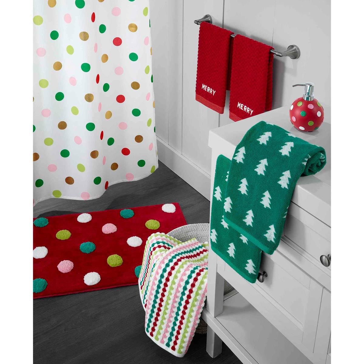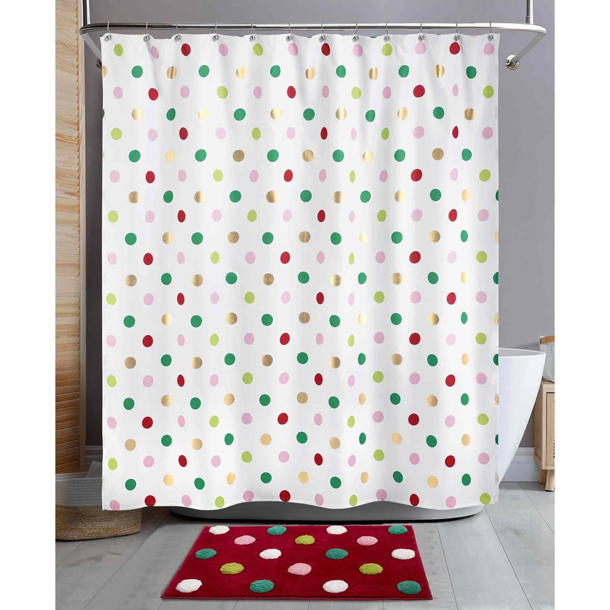 This Nicole Miller Holiday Dot Shower Curtain features an all-over contemporary holiday design with vibrant, colorful dots! This shower curtain adds a bit of holiday fun and cheer to any bathroom!.